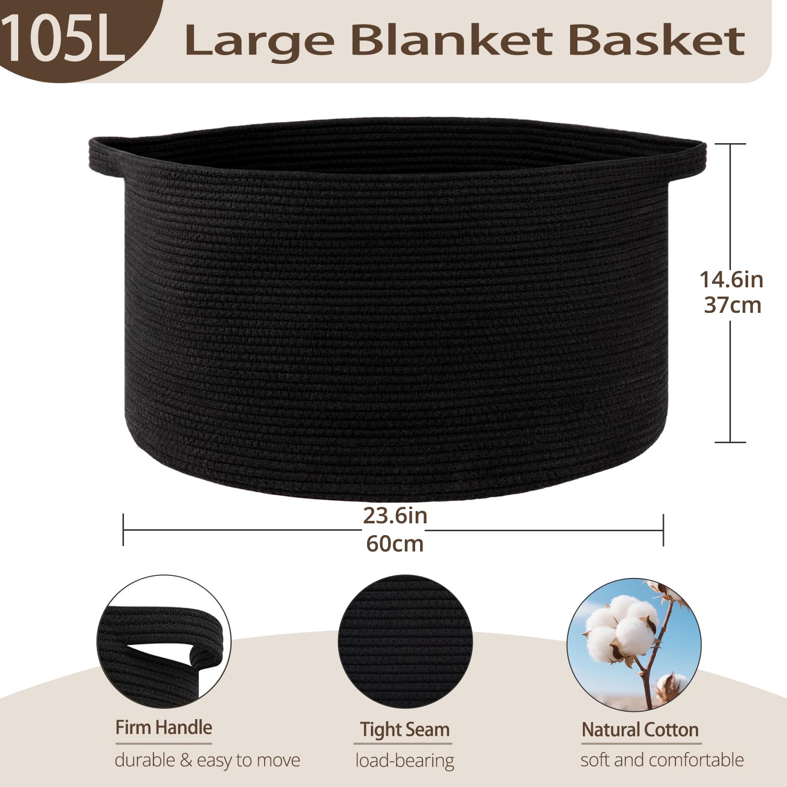 Comfort Material: Blanket storage for living room is made of sturdy cotton rope weaving, the woven basket is tightly stitched and can be used for a long time, soft and comfortable cotton rope baskets won't scratch furniture and floors, free of harmful chemicals, baby and pet friendly
