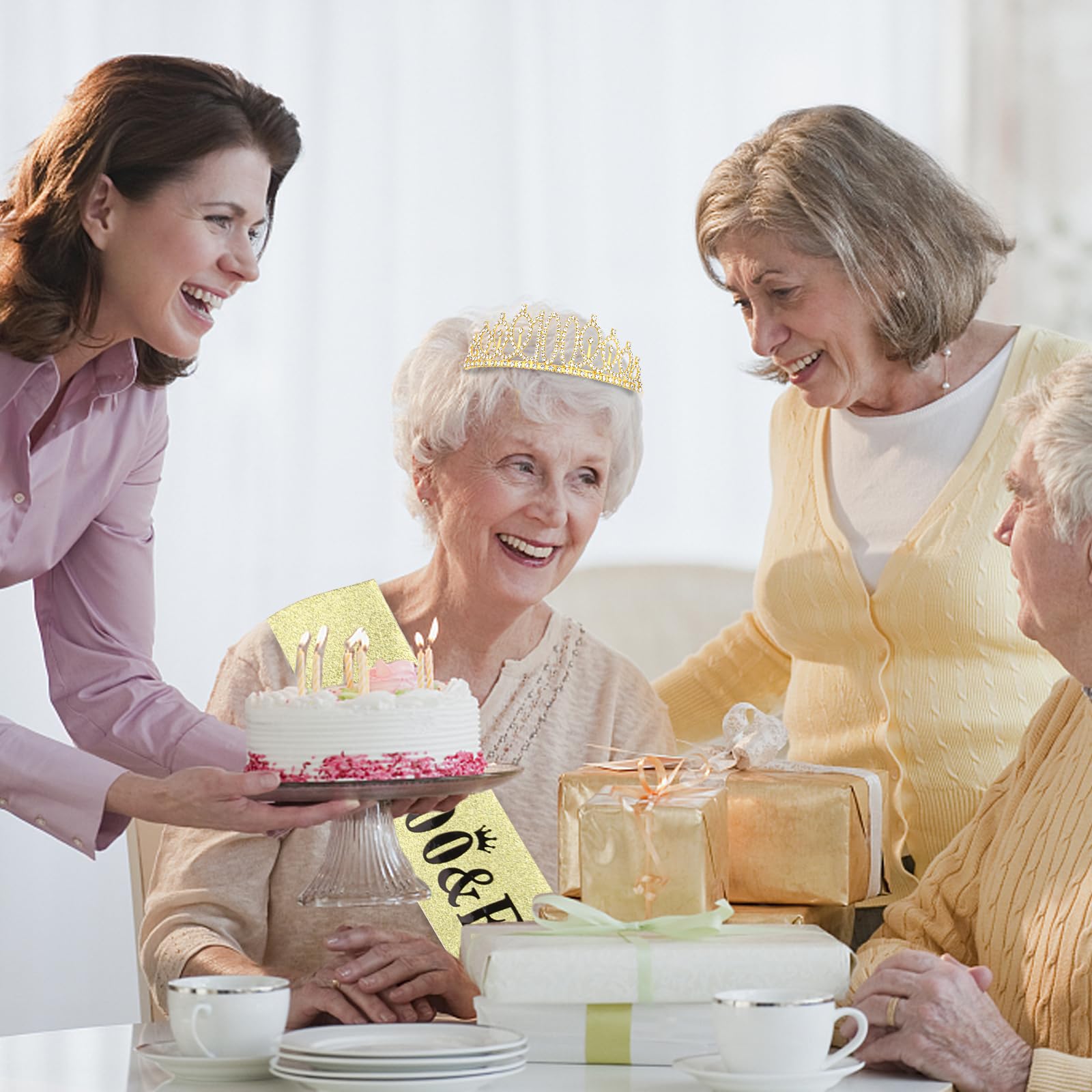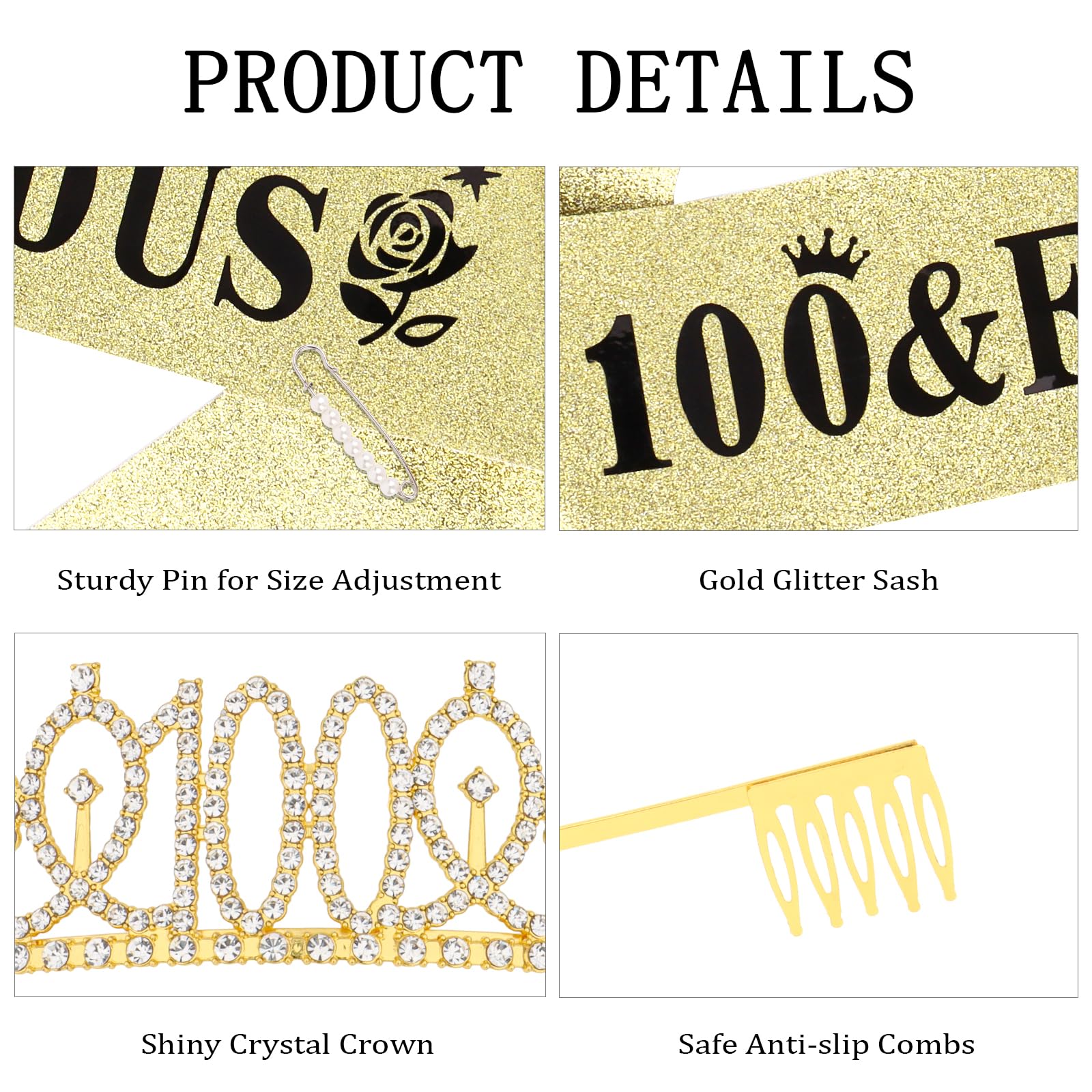 Package Included: The package contains "100 & Fabulous" birthday sash and 100th crown and a pearl pin. You will be like a queen in your birthday celebration