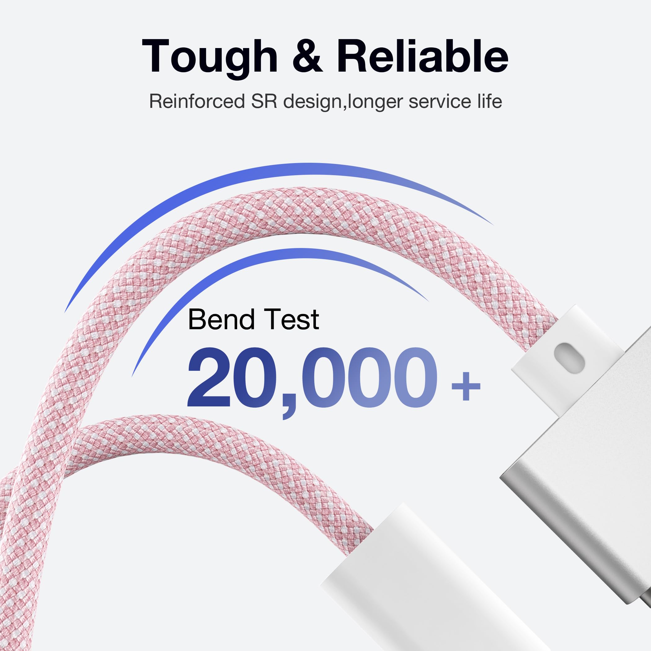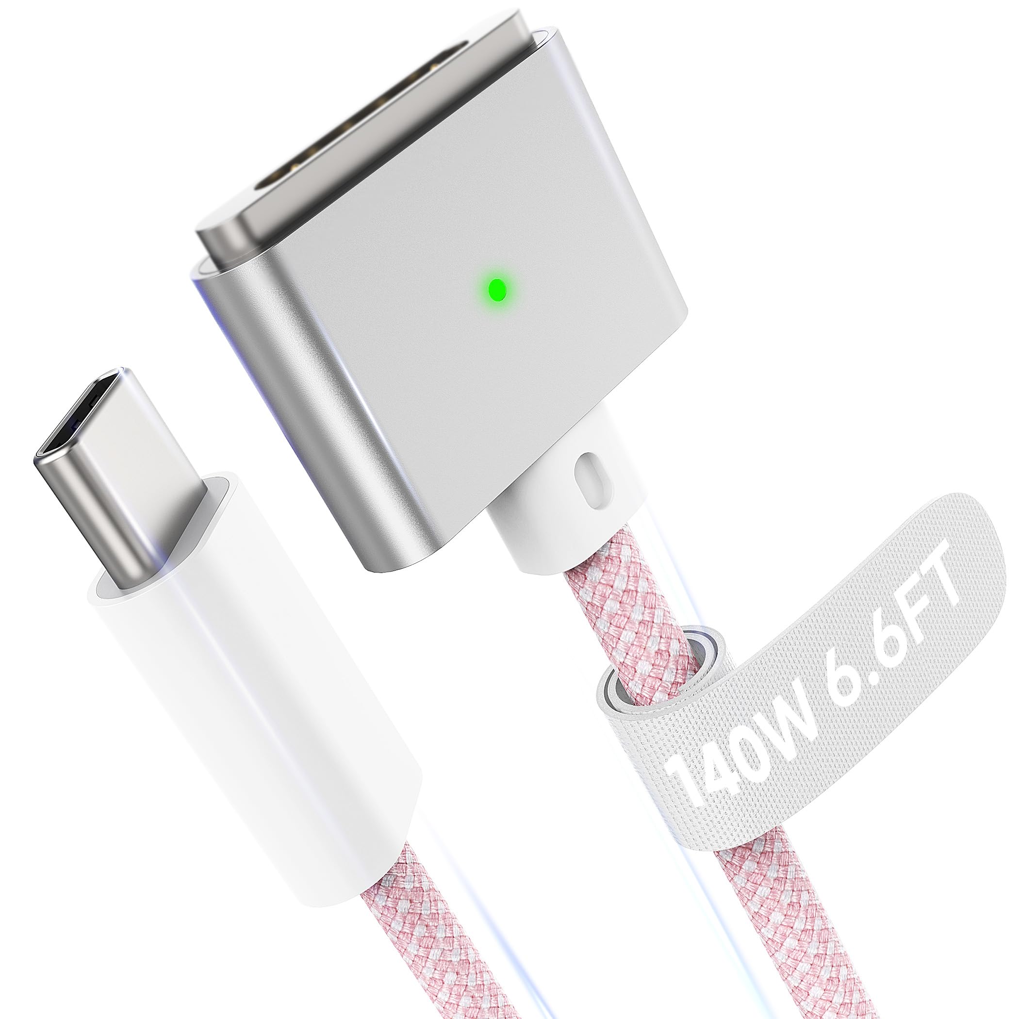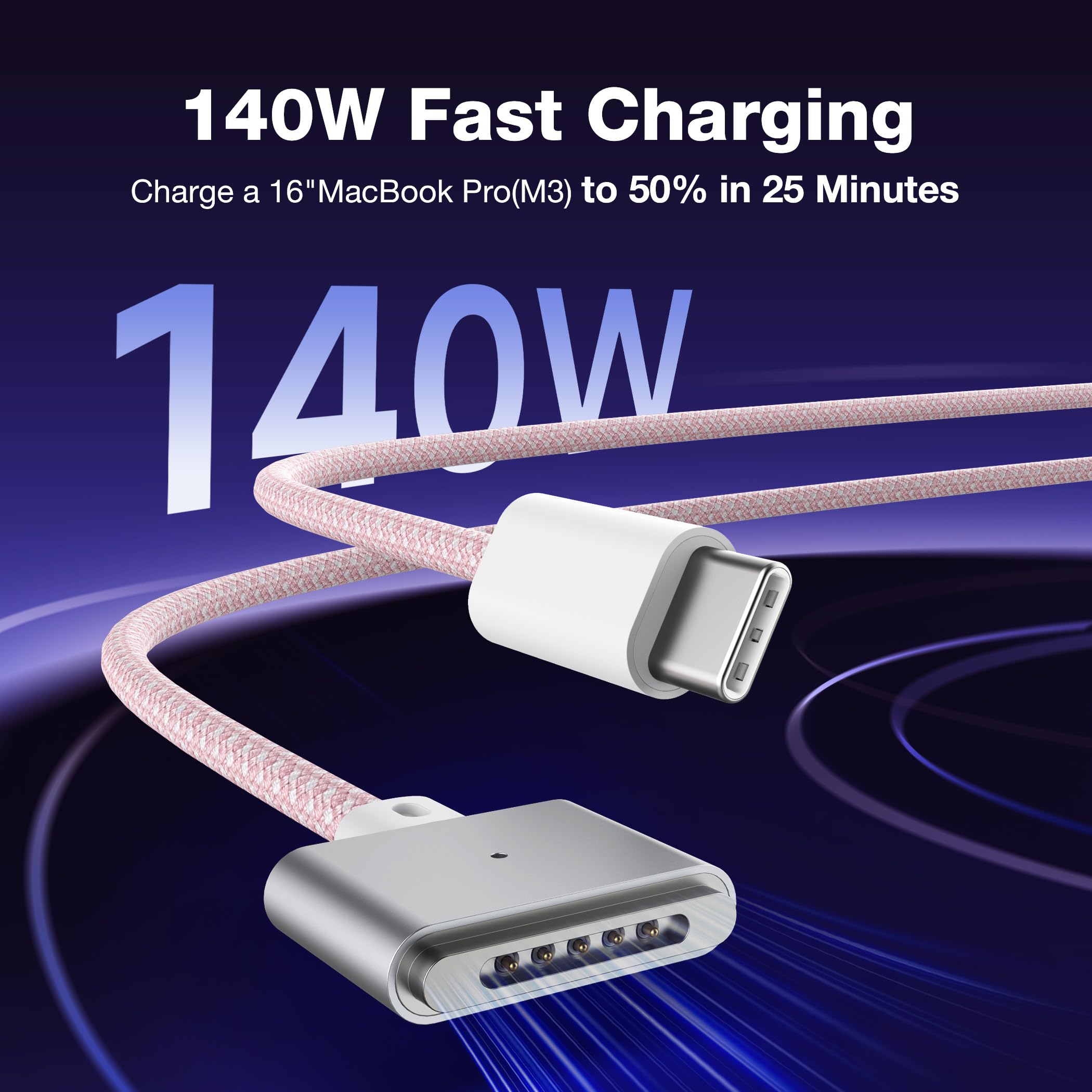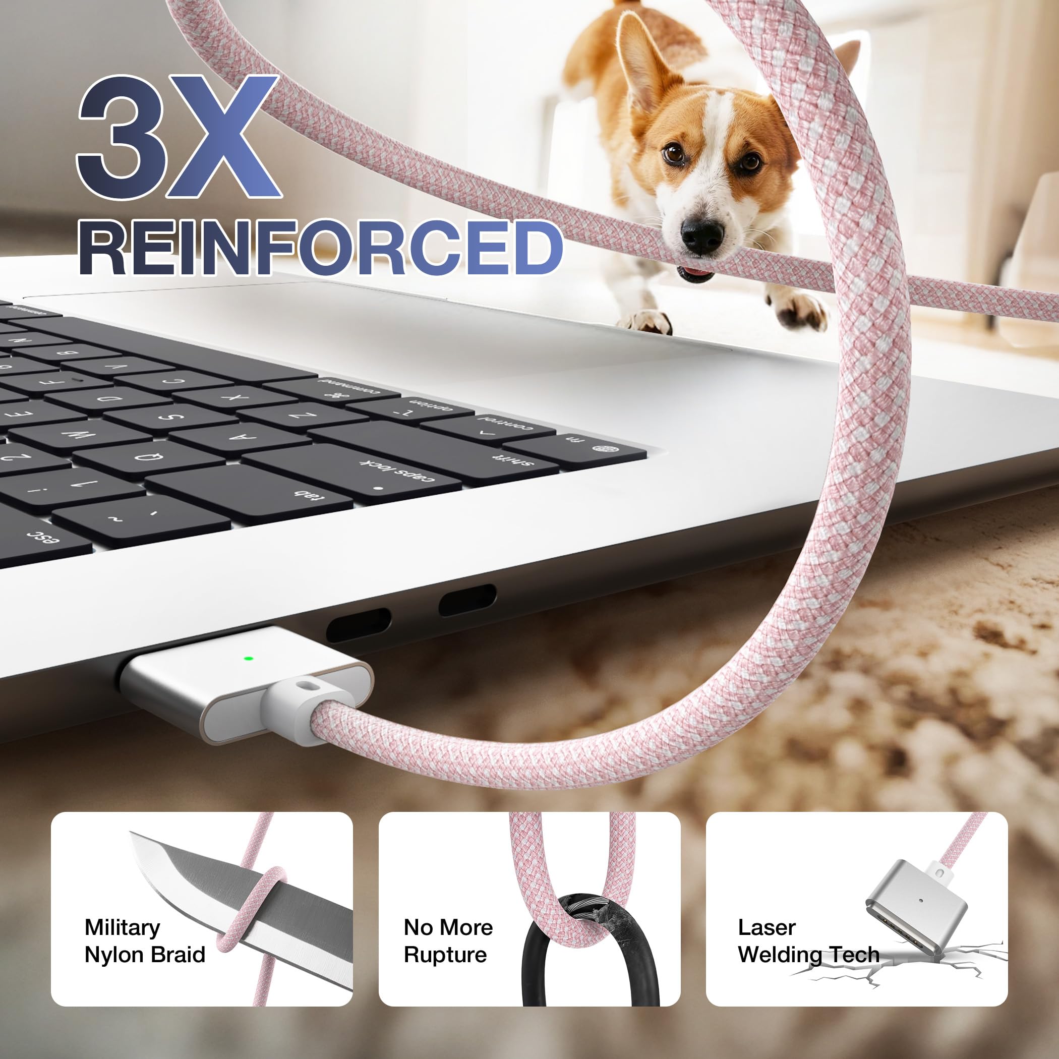 Superior Durability: Engineered for resilience, this MacBook Pro magnetic charging cable features a high-strength double-braided nylon exterior—tested to endure 20,000+ bends. Its reinforced construction resists daily wear, fraying, and tangling