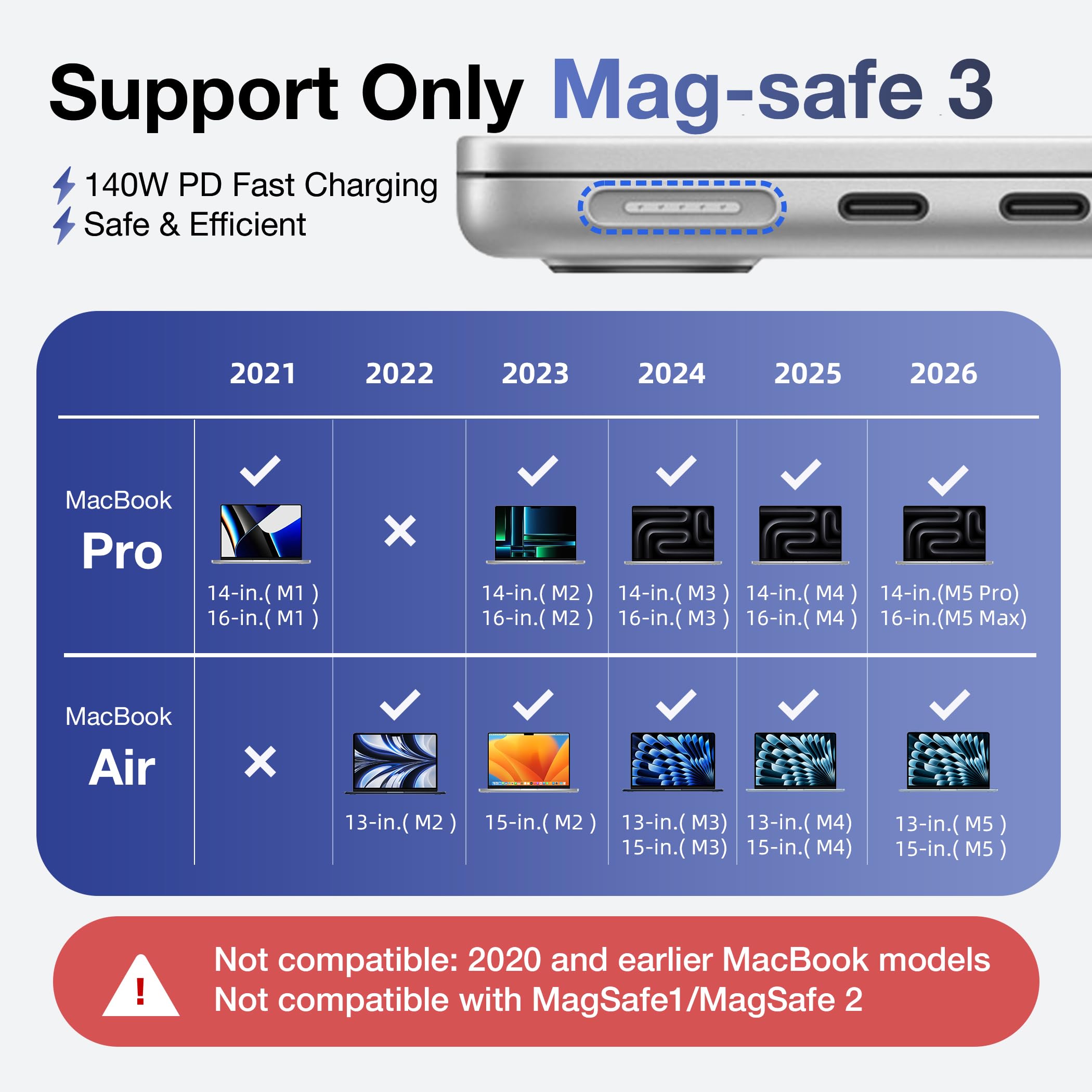 Compatible with MacBook: Please check your MacBook model before purchasing to ensure compatibility. Compatible with MacBook Air 13" M5 2026/ M4 2025/ M3 2024/ M2 2022; MacBook Air 15” M5 2026/ M4 2025/ M3 2024/ M2 2023; MacBook Pro 14” M5 2026/M4 2025/M3 2024/M2 2023/M1 2021; MacBook Pro 16” M5 2026/ M4 2025/M3 2024/M2 2023/M1 2021