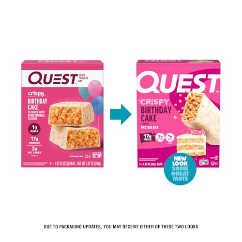 Quest Nutrition Crispy Birthday Cake Hero Protein Bar, 17g Protein, 1g Sugar, 2g Net Carbs, Gluten Free Protein Snack, Keto Friendly, 12 Count