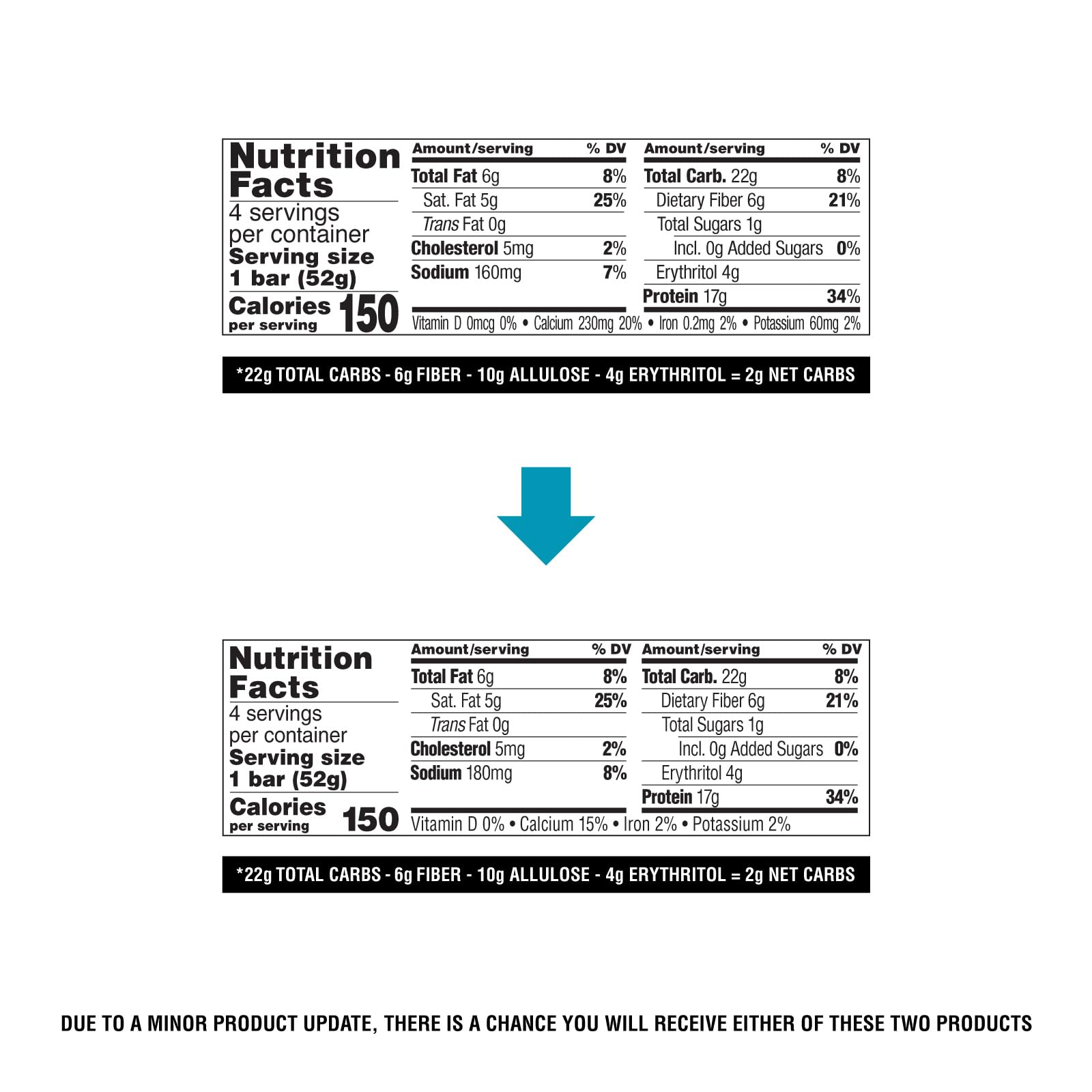 PROTEIN FORWARD. 17g of protein, 1g of sugar, and 2g of net carbs per serving. Support your fitness goals and enjoy a crispy, chewy bar with the deliciously sweet, rich vanilla flavor of birthday cake.