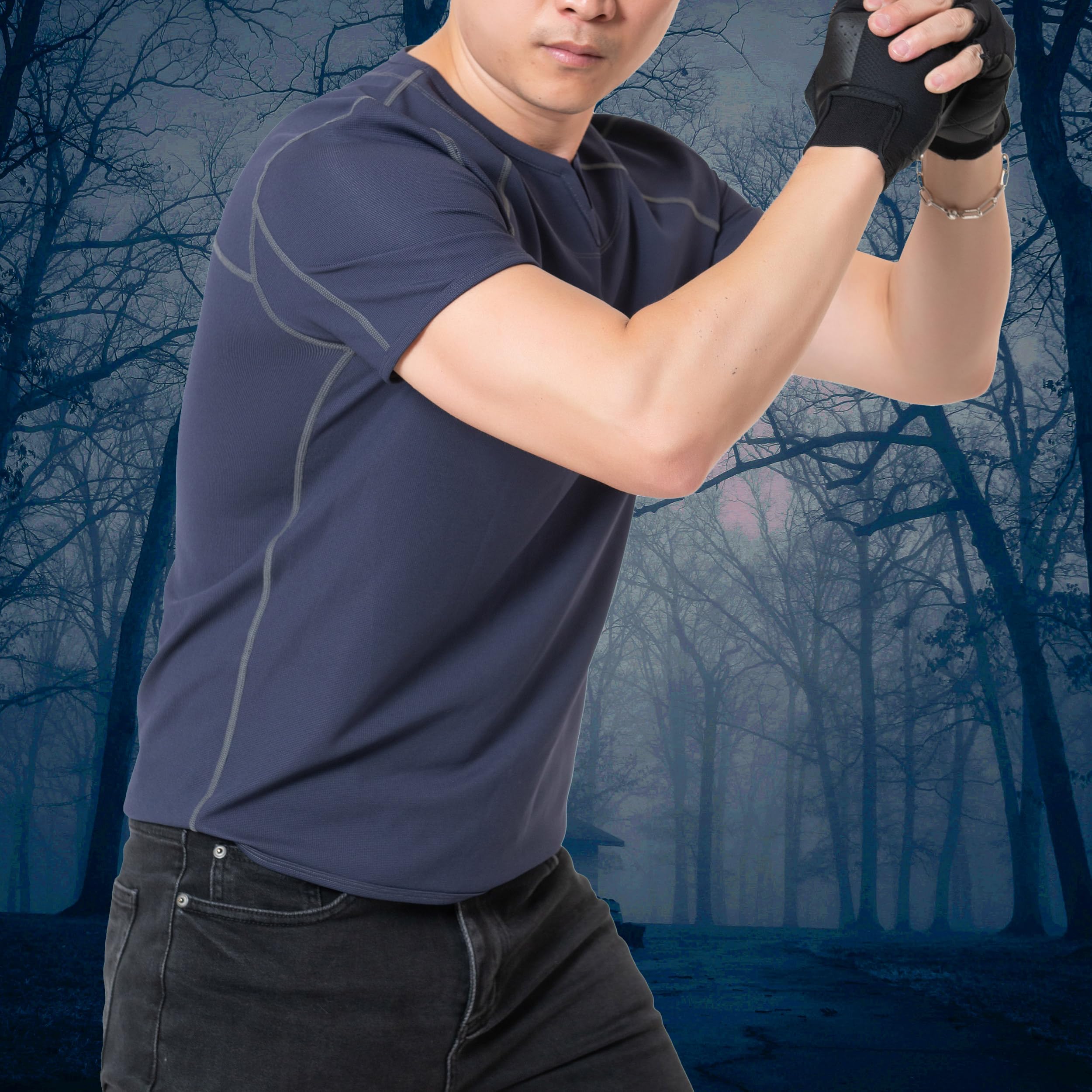 ELASTIC FABRIC: 88% nylon, 12% spandex. The fabric is durable, light, rich in a certain amount of elasticity, fabric is very wear-resistant and not easy to break. Our T-shirts fit the body and are not tight, making you comfortable all day