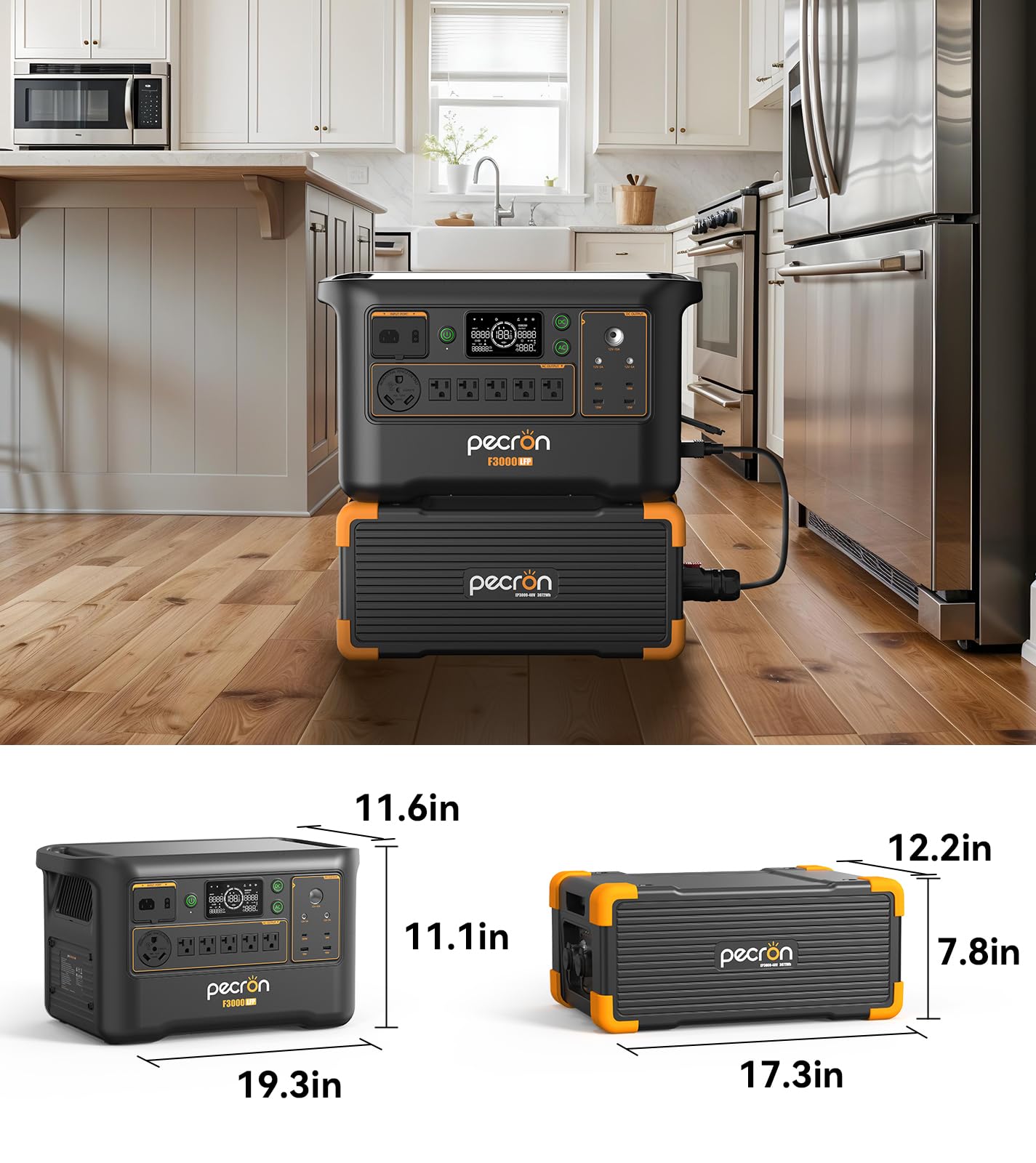 【Sufficient 3072Wh Battery Capacity】 Pecron power station has a 3600W 30A pure sine wave output, easily driving large equipment such as air conditioners and cutting machines. The 3072Wh LifePO4 battery can provide 3-4 days of household emergency power (supporting the simultaneous operation of refrigerator, router and lighting), and can be expanded to 9216Wh (add two EP3000-48V), making it an excellent solar power station to meet winter power outages