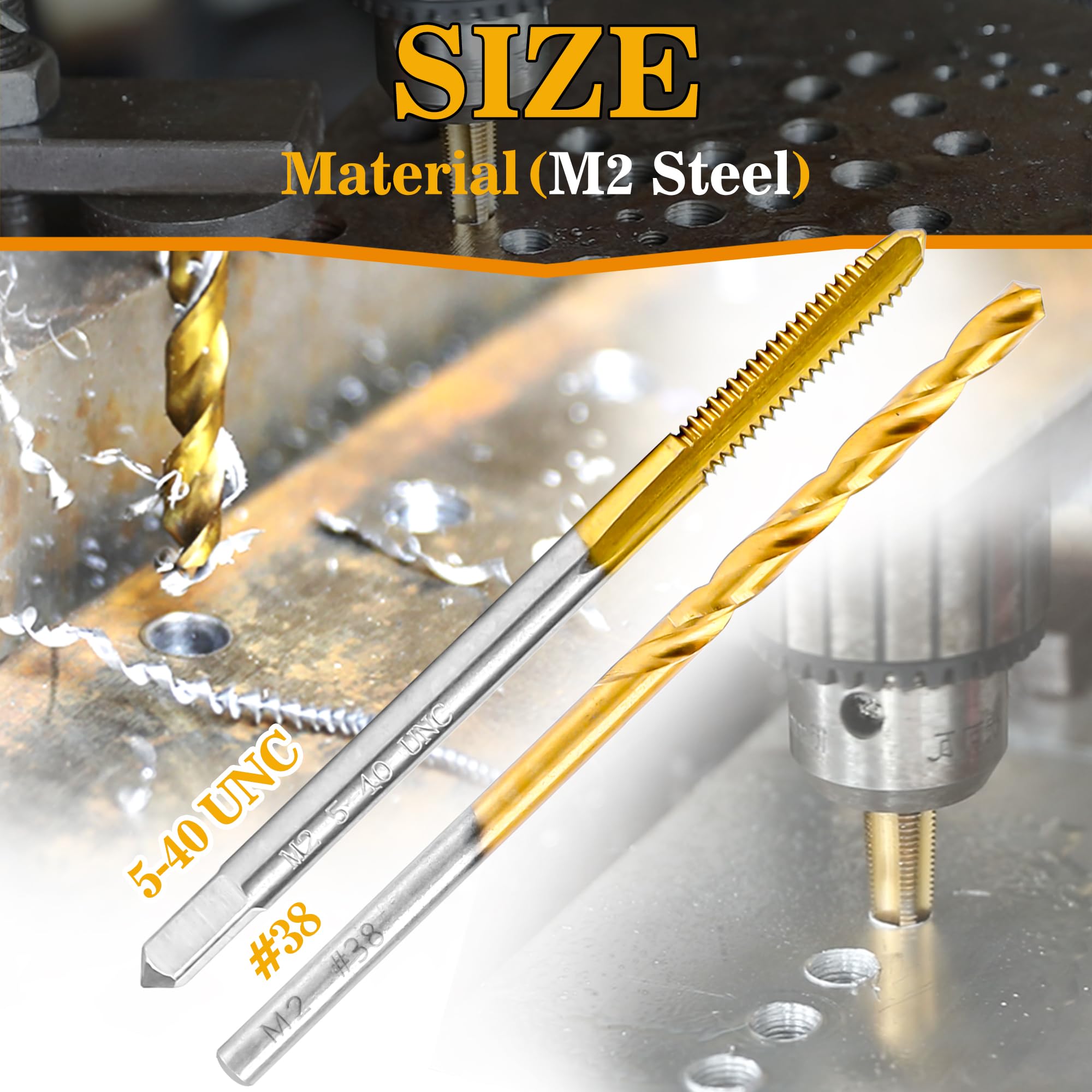 【Size】Include 5-40UNC M2 steel tap and #38 M2 HSS drill bit with round shank,all stored in a storage box for easy carrying.