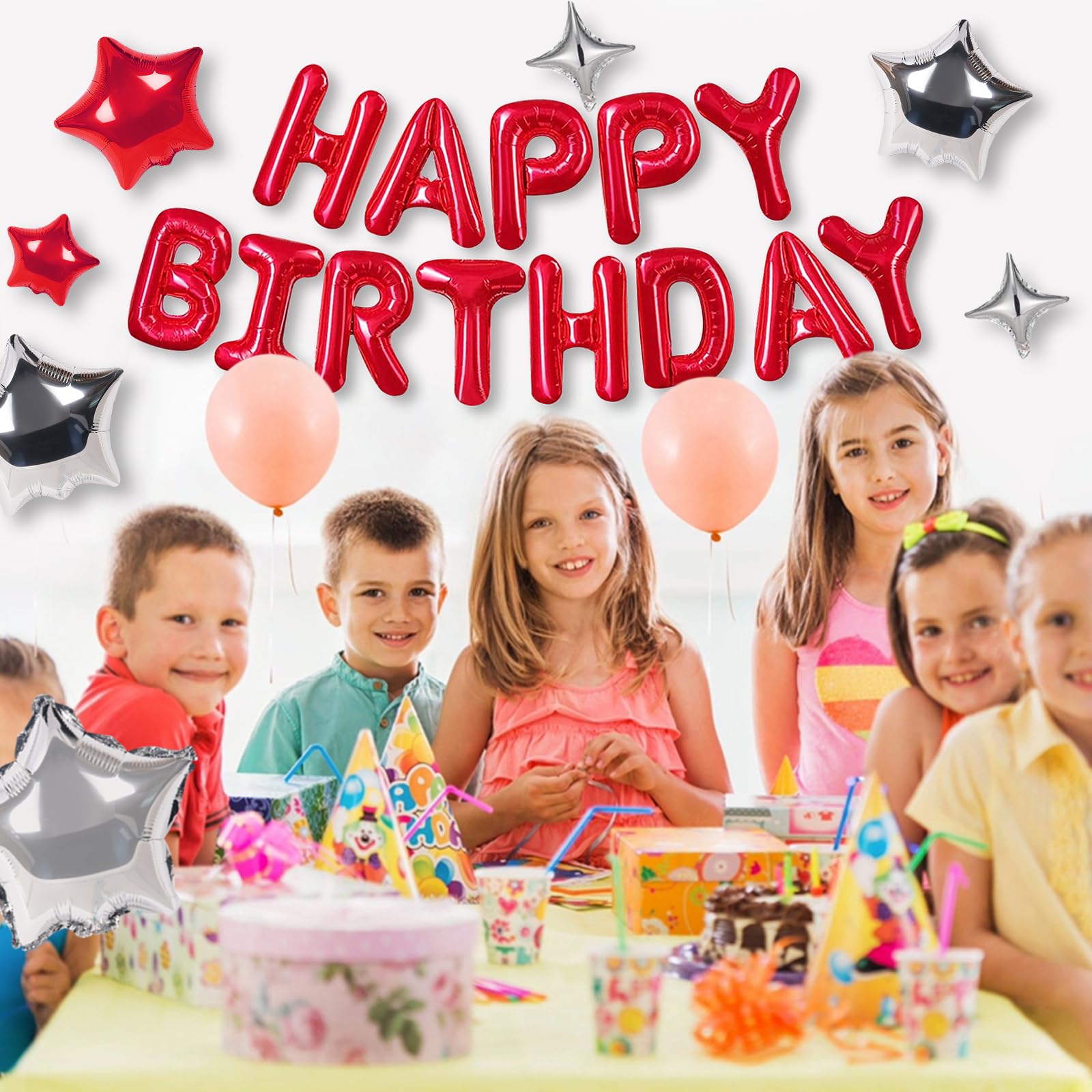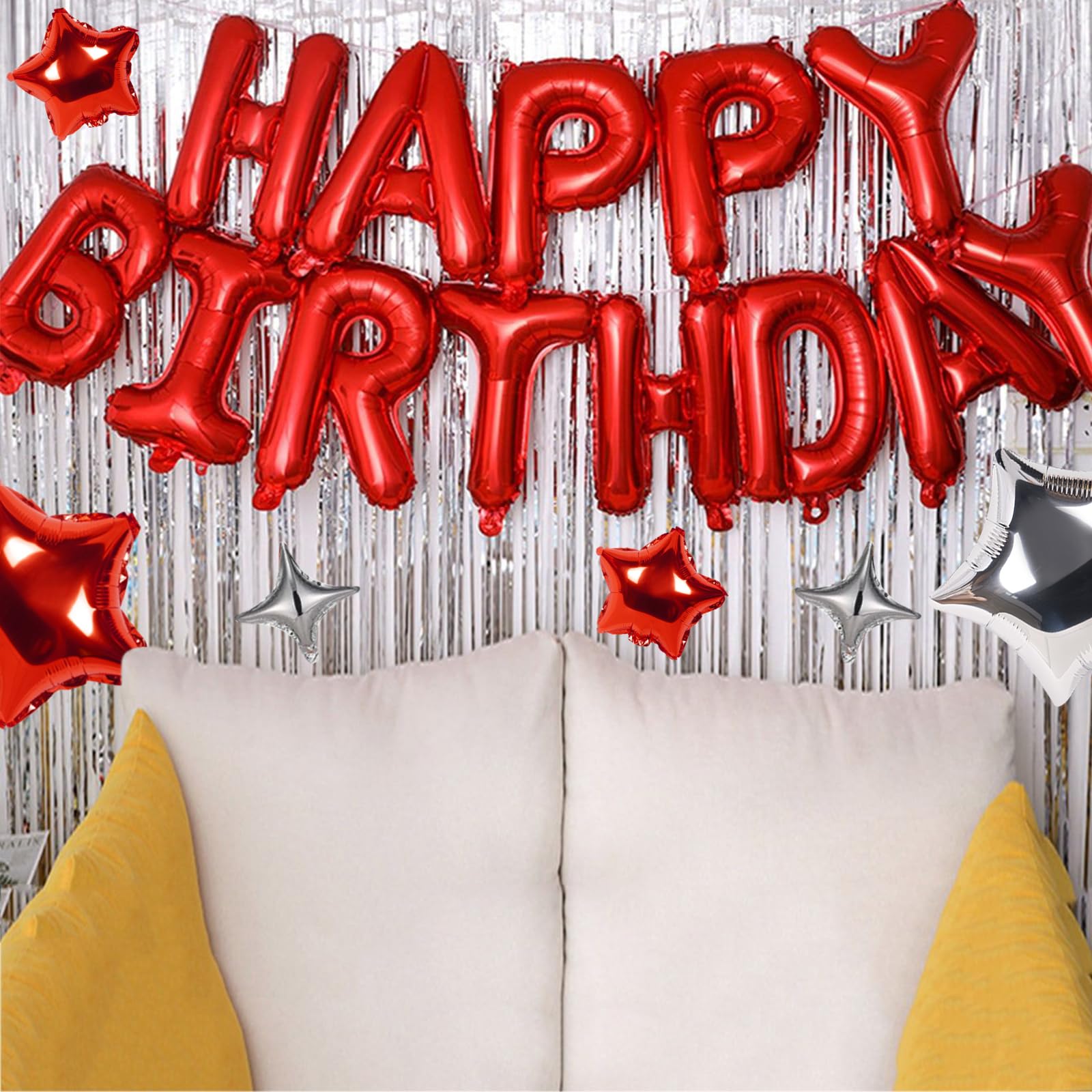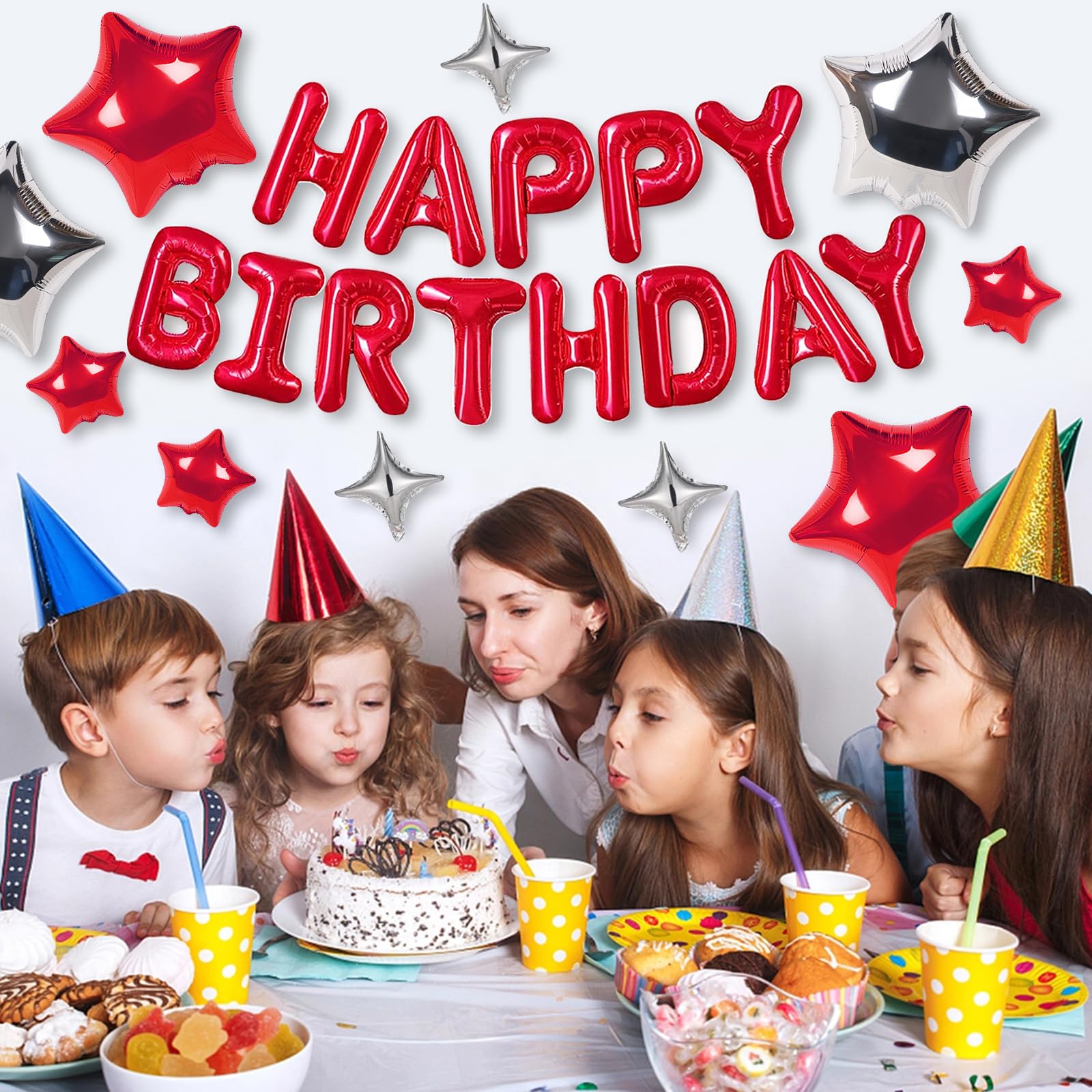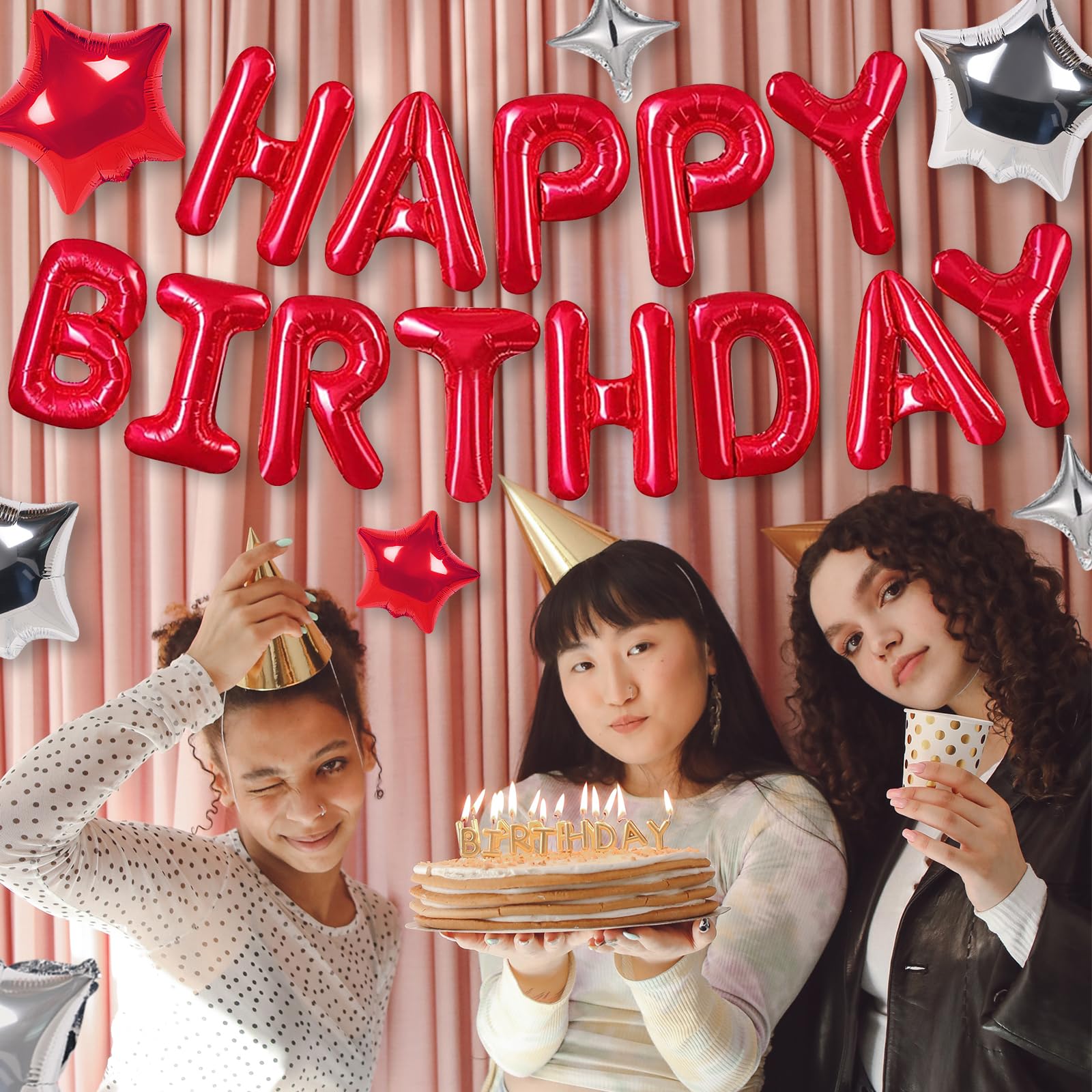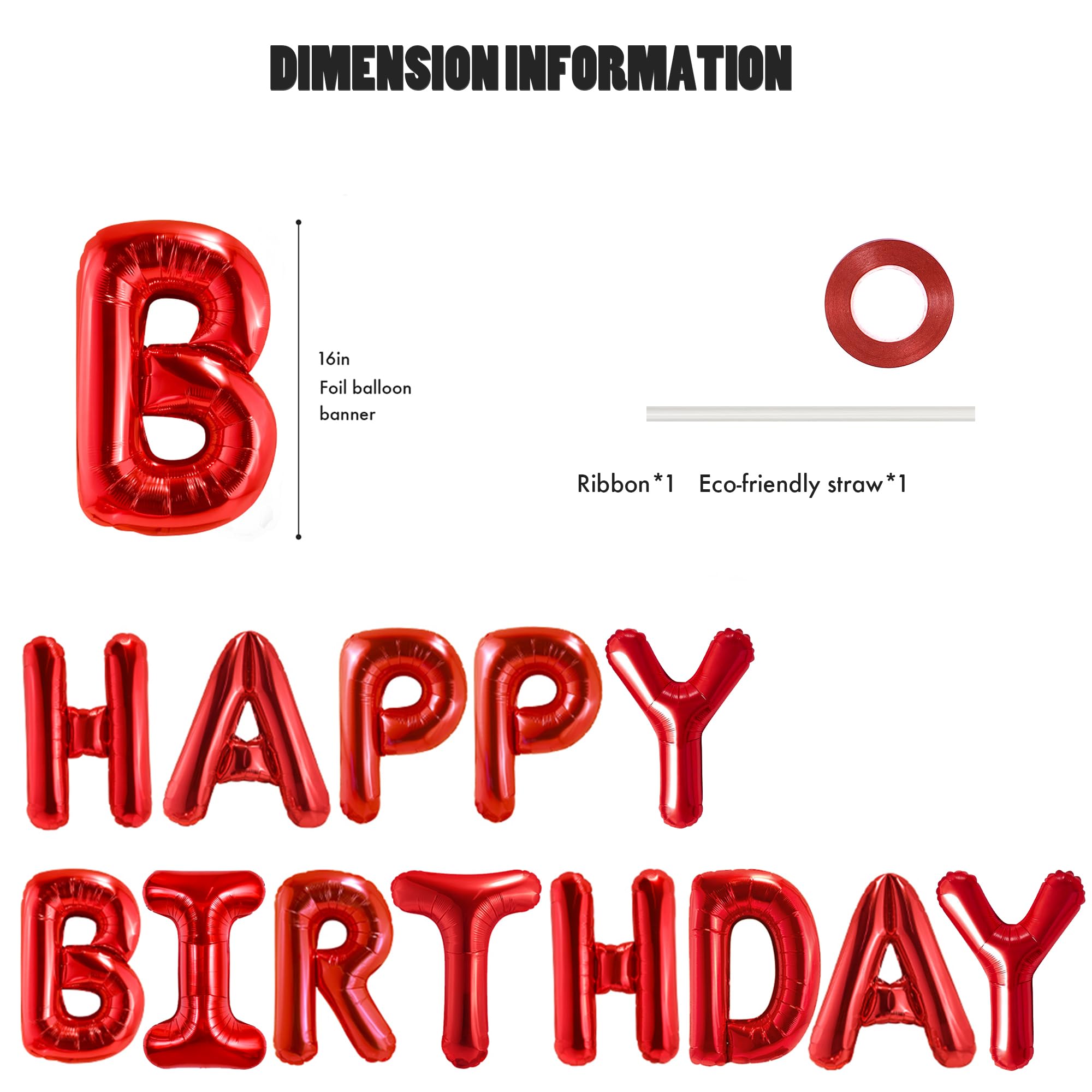 🎈 Package Included:16 inch Red foil letter happy birthday balloons.Each package come with 13 pcs independent letter balloons which can be combined into "HAPPY BIRTHDAY",2 pcs straw and ribbon.