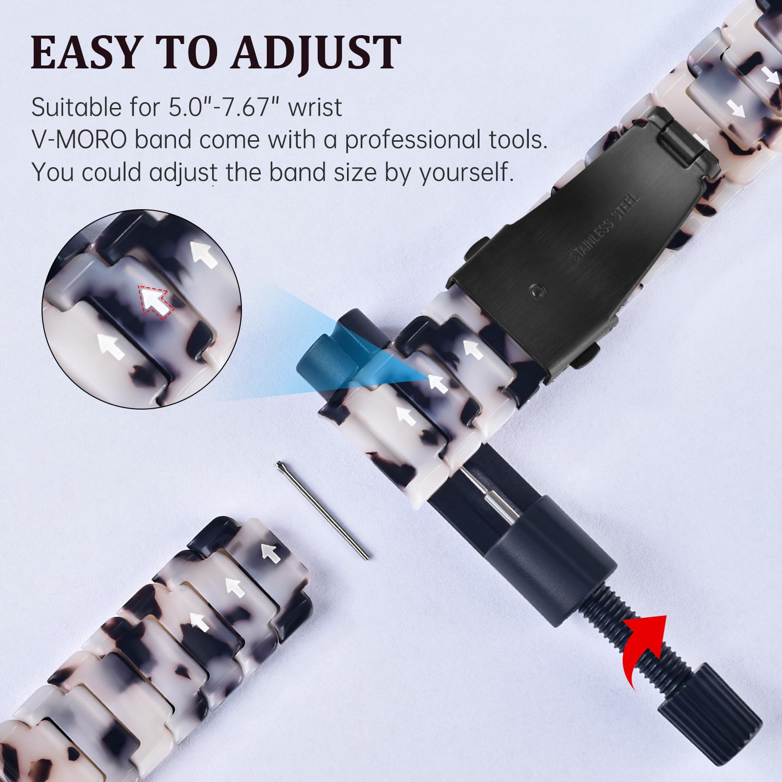 🎅Easy to use and adjust - You only need to press easily the buttons on both sides of the Stainless Steel Buckle to open the strap or release it. The package is contain a links removal tool, an instruction. You could easily remove the extra links to fit your wrist perfectly