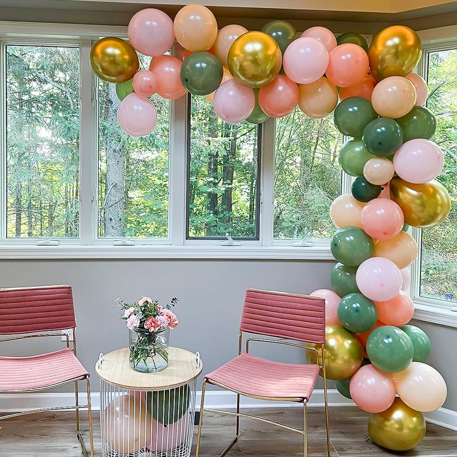 WIDE APPLICATION: These sage green pink gold balloon party supplies are great for Girls Birthdays Jungle Safari Baby Shower Woodland Women Bridal Wedding Party Decoration.