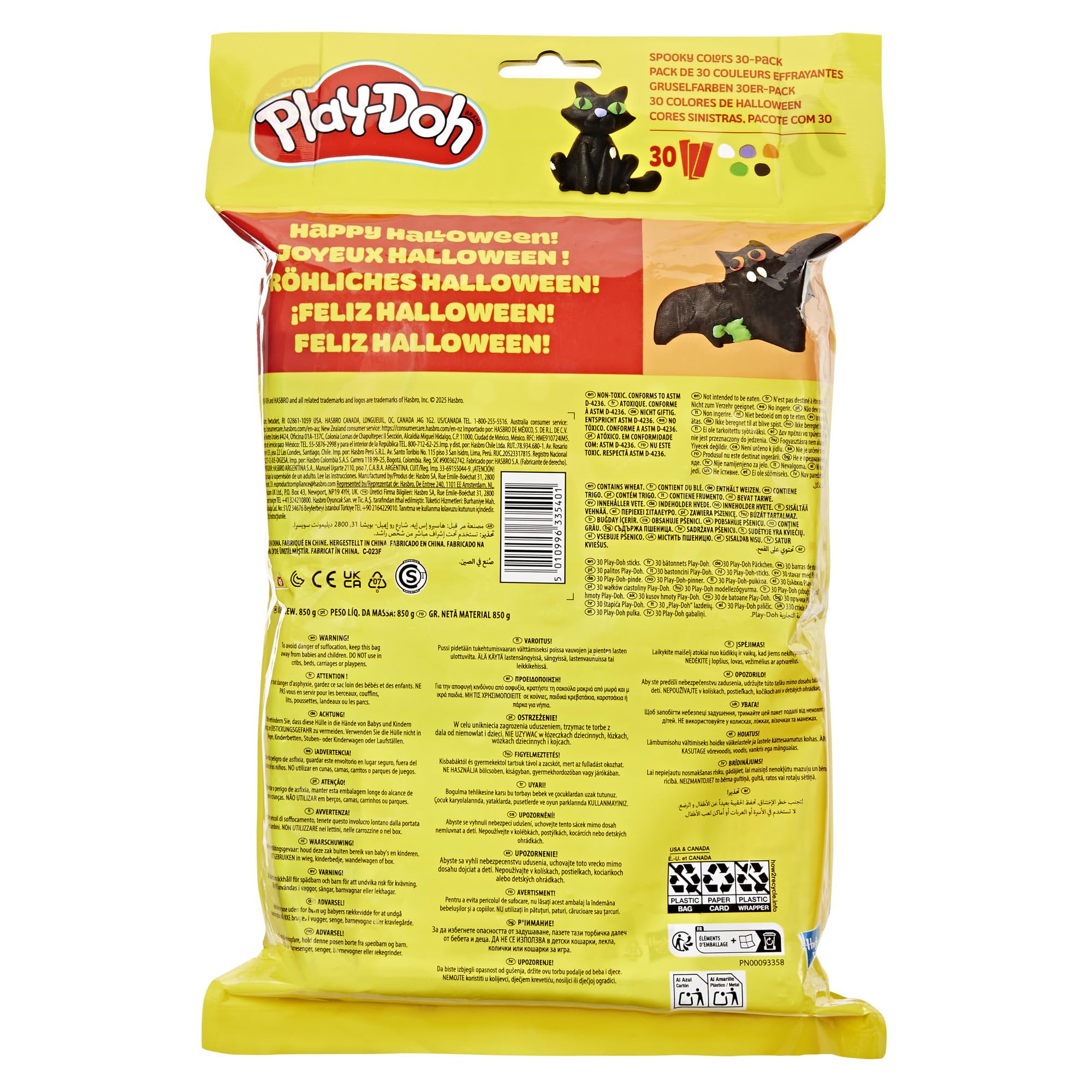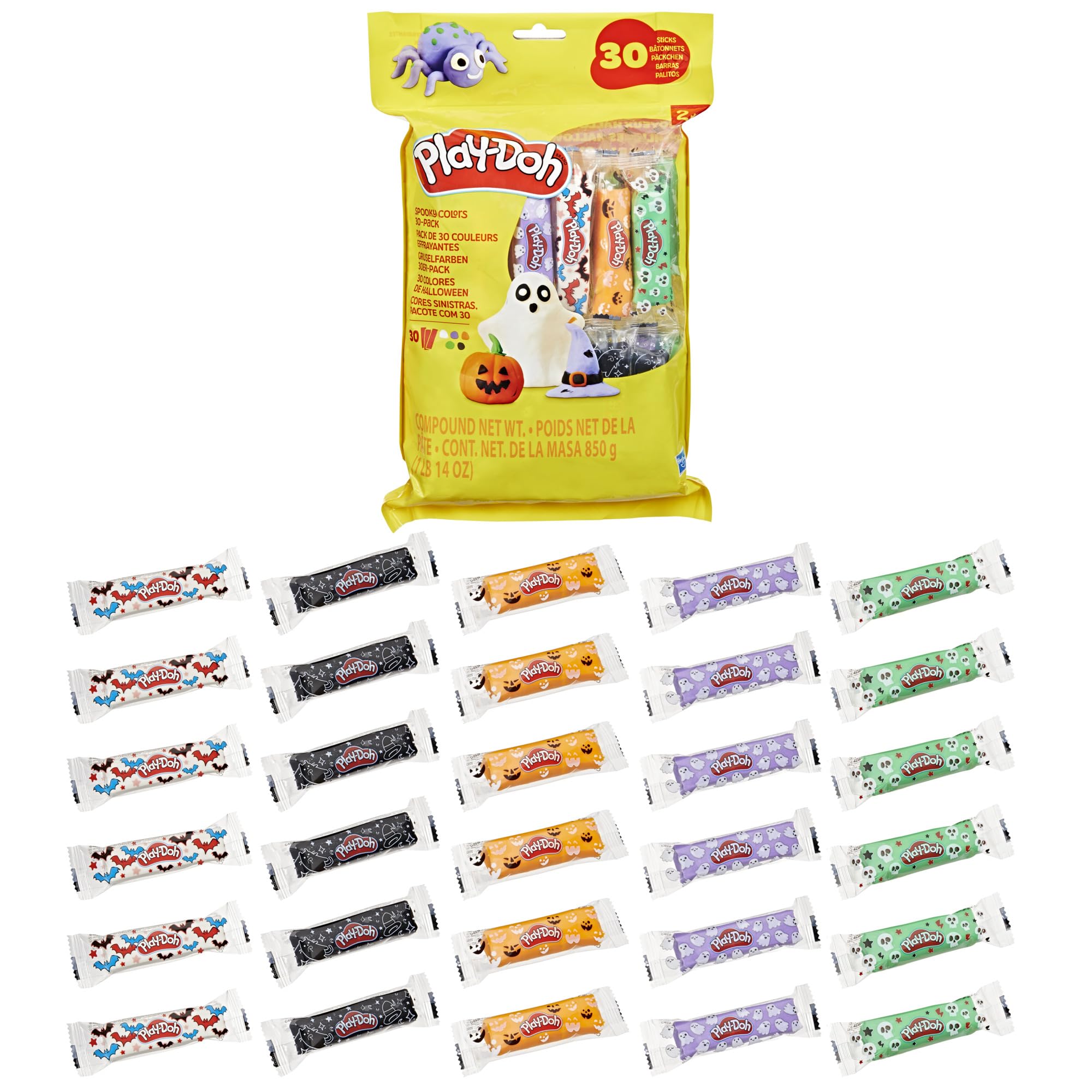 Hand out colorful tricks and creative treats with the Play-Doh Spooky Colors 30 Pack! Get trick or treaters screaming with joy when you give them a kids Halloween candy alternative that lets them use their imaginations. A perfect size for treat bags, these individually wrapped color sticks each contain 1 ounce (28 grams) of Play-Doh modeling compound. 5 different colors include 6 each of orange, green, purple, white, and black for a fun bulk Halloween toys variety pack. PLAY-DOH and HASBRO and all related trademarks and logos are trademarks of Hasbro, Inc.