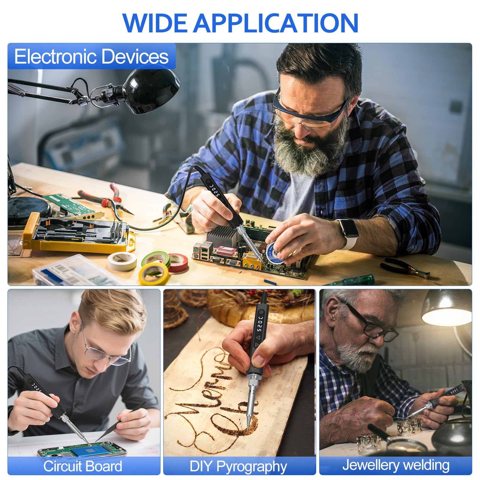 7s Fast Heating & 5°C Precision Control: Our 120W Soldering iron reaches its full heat of 356-968°F in just 7 seconds to reduce the waiting time, making it ideal for delicate electronics and heat-sensitive components. Can be adjusted accurately and efficiently for different repair jobs, so as not to damage heat-resistant components.