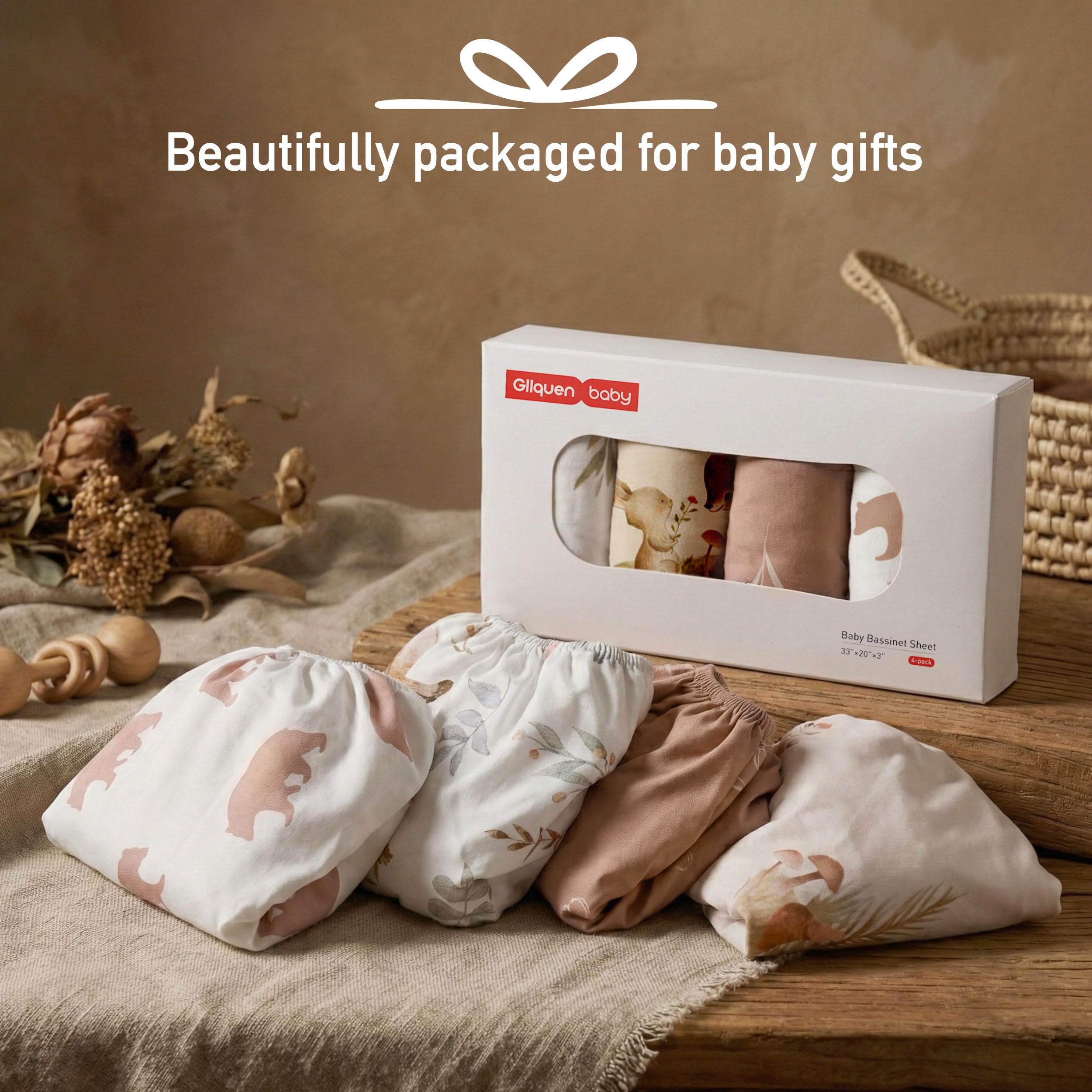 Practical 4-Pack in a Gift-Ready Box: This convenient 4-pack comes in a beautiful gift-ready box, making it an ideal and thoughtful present for baby showers and new parents. Always have a fresh sheet on hand for quick changes due to spit-ups, leaks, or accidents, reducing middle-of-the-night hassle