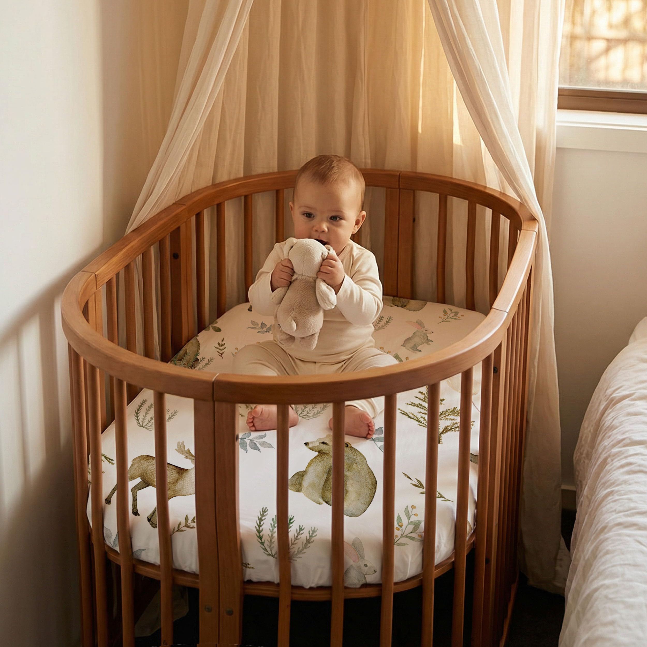 Versatile for Multiple Nursery Uses: The stretchable fitted design not only perfectly fits most bedside cribs but also accommodates similarly sized oval or rectangular bassinets. It can even be used as a secure cover for changing pads, offering exceptional value and versatility for all your nursery needs