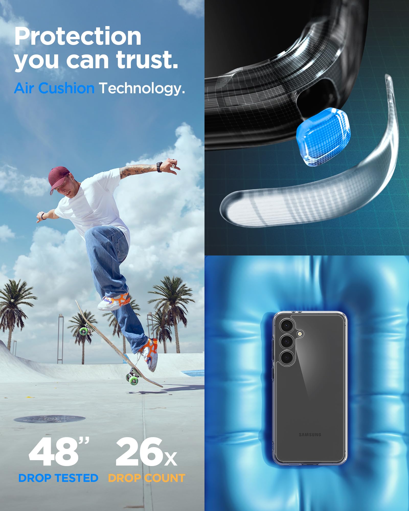 Military-grade drop protection via Air Cushion Technology