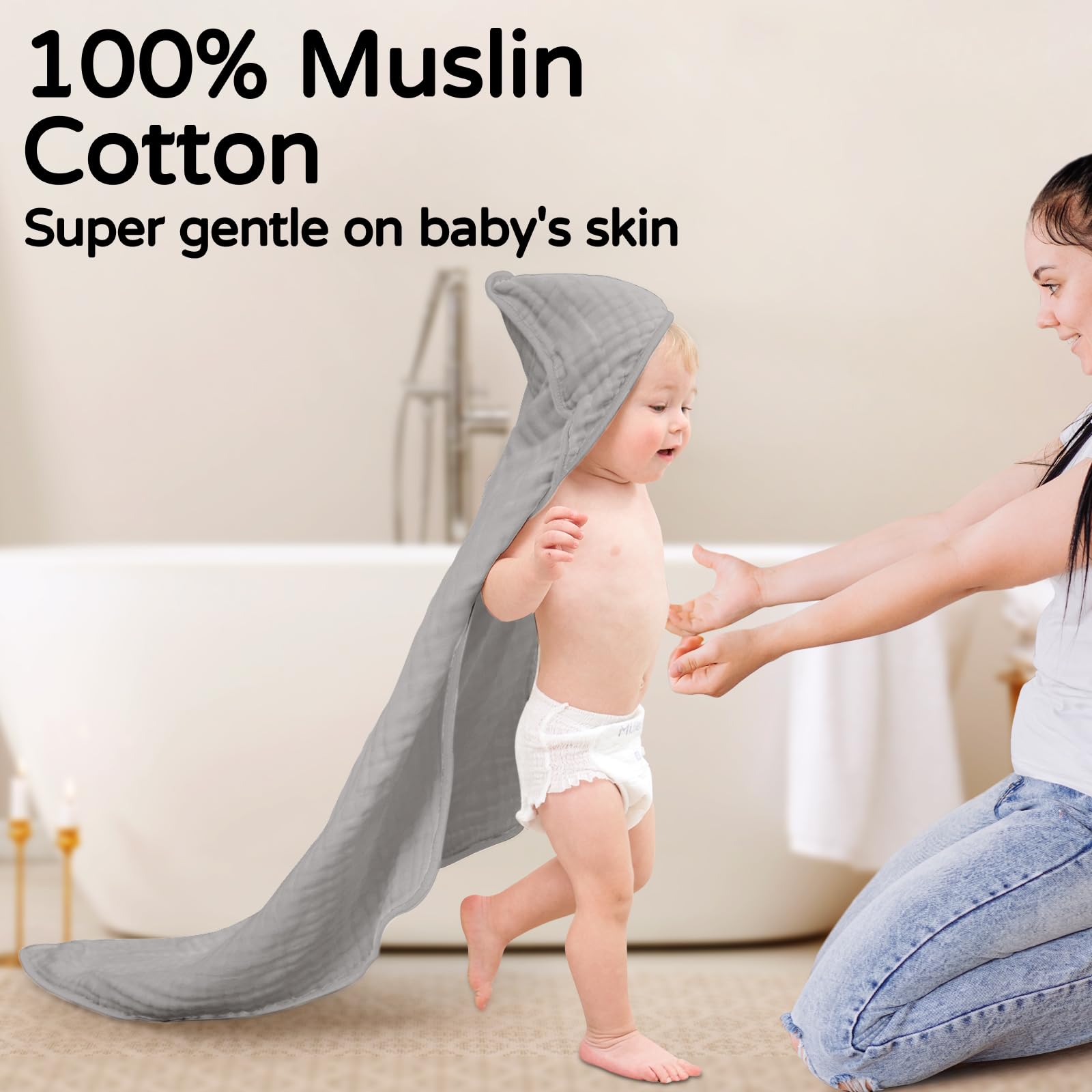 [Soft and Absorbent] - 100% high quality muslin cotton, the best fabric for babies, makes the baby bath towel super soft than regular cotton towel. It absorbs the water off baby quickly and keeps baby warm after baths.