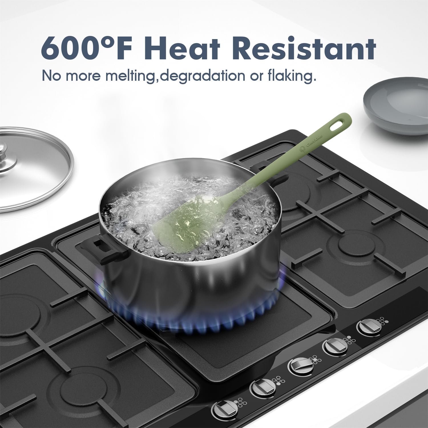 Premium 100% Food Grade Silicone: The silicone spatula set is made of healthy and friendly material, resistant to high temperatures up to 600 °F. No more melting, cracking and worrying
