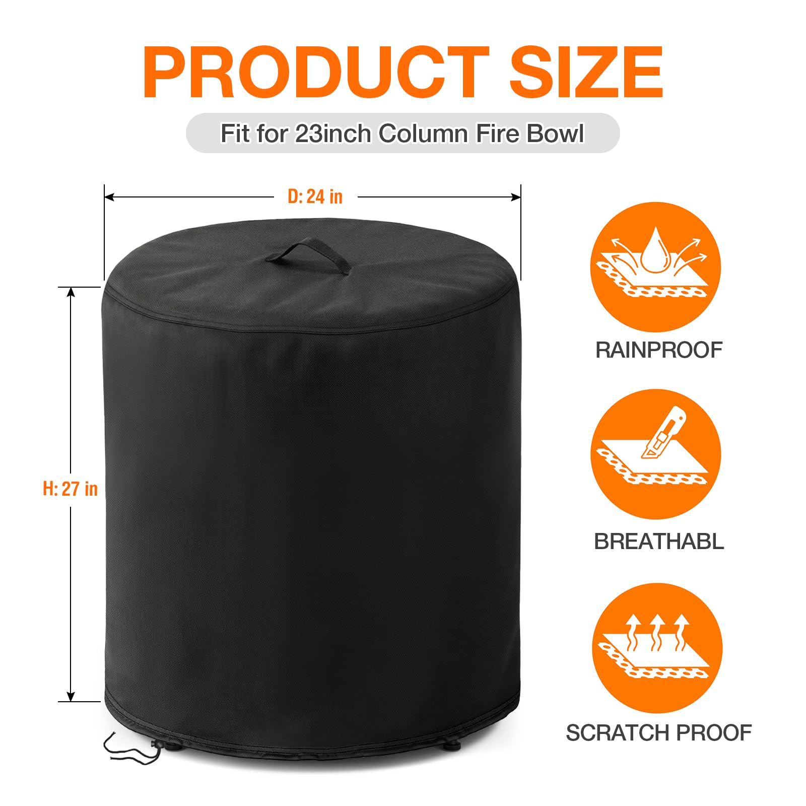 Fit up to 24” Round Fire Column- POMER fire column cover fits for Bali Outdoor 23 Inch 23 inch Outdoor Fire Pit Round for Tabletop Fire Pit Stones,round fire pits up to 24"D, cover is 27” high. Design for 23" 22" cylinder fire column table .Also fits fire pits such as 21 inch, 20inch