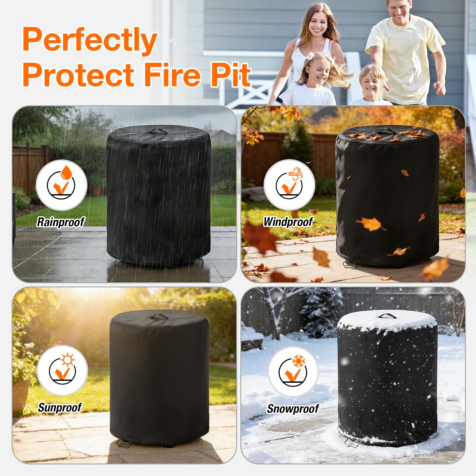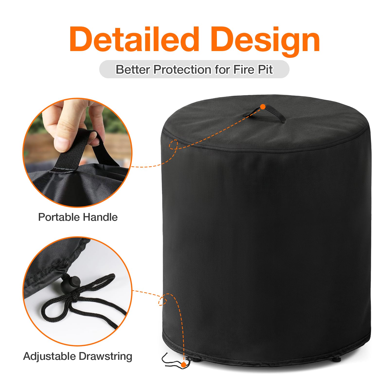 High-density Material- Our firepit cover is made of premium high-density polyester fabric with silver plated coating, the round fire pit cover is durable,anti-hook and waterproof and weatherproof, protects your fire pit against rain, wind, snow, dust and sunlight