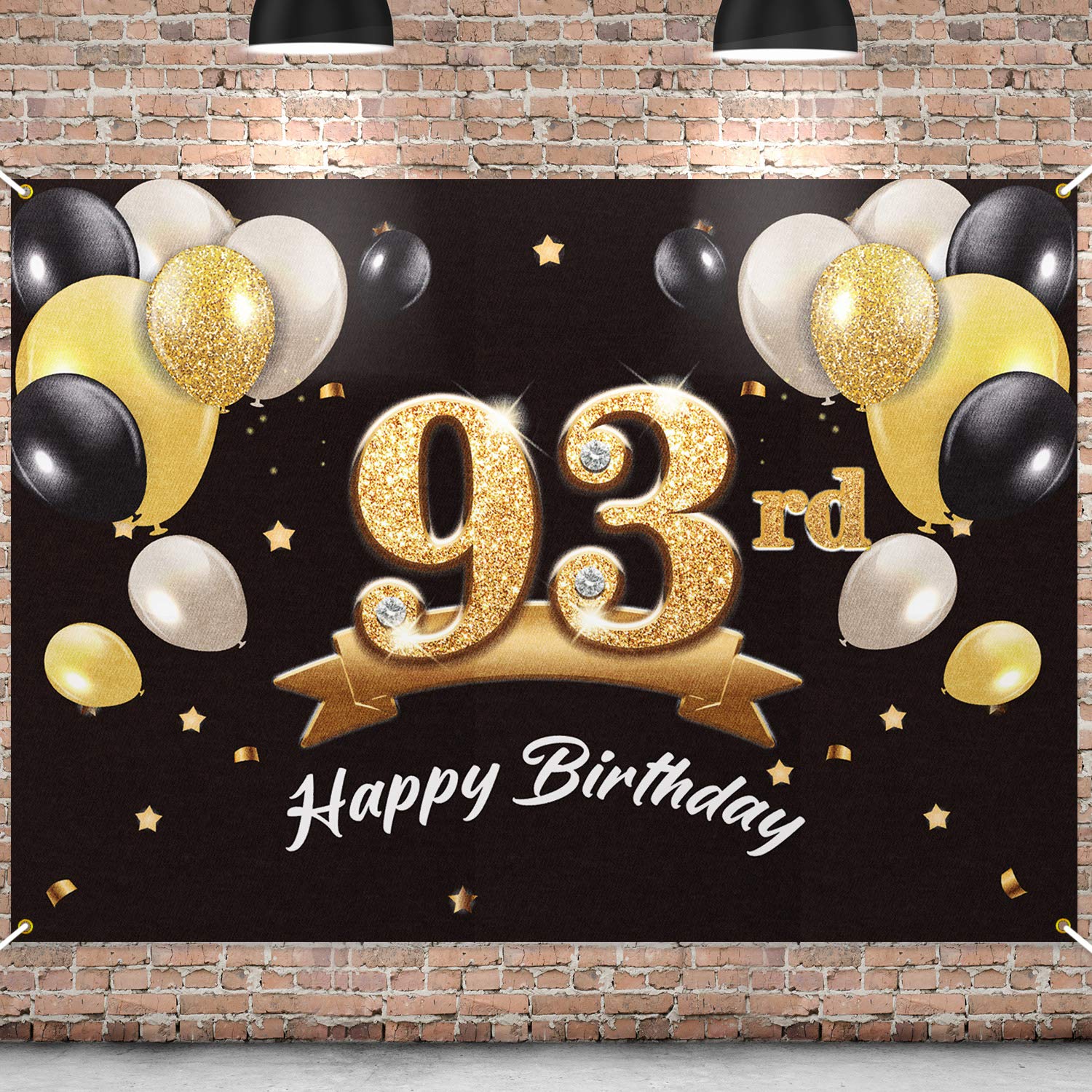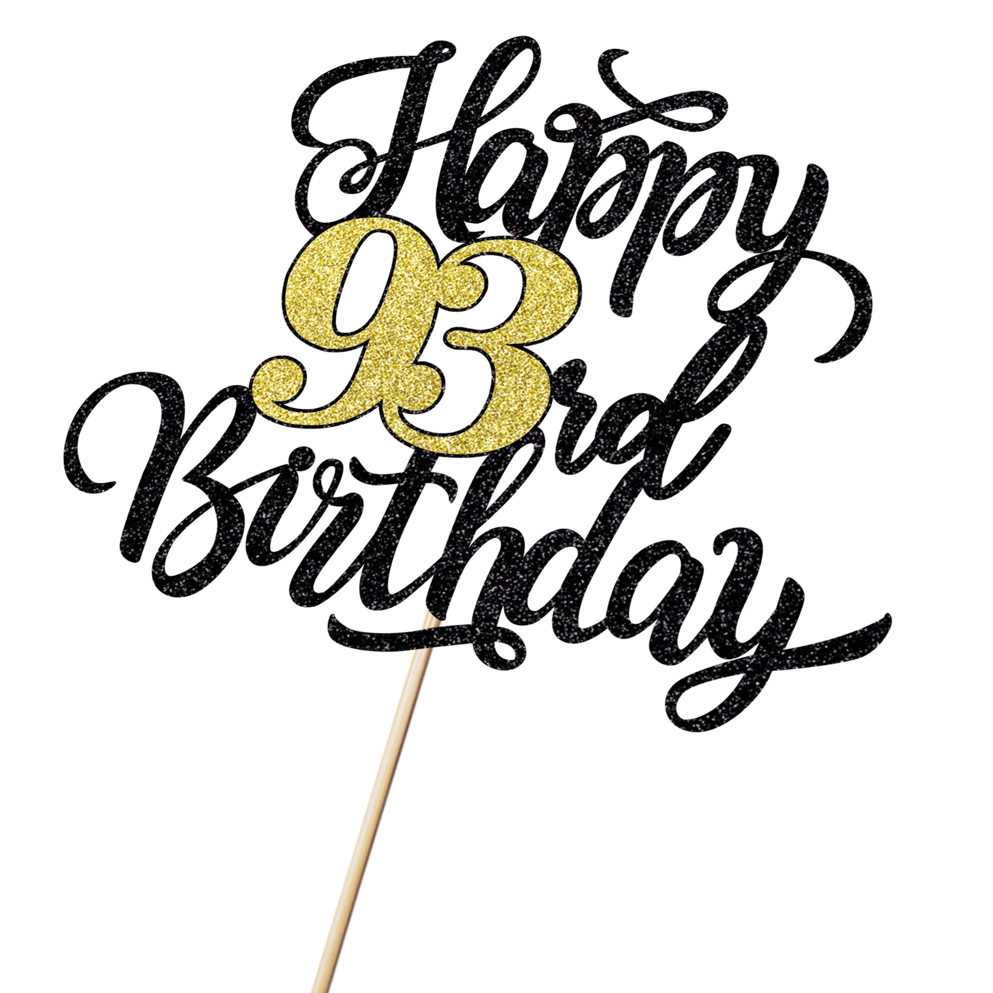 Happy 93rd Birthday Cake Topper, Black Gold Glitter Birthday Cake Topper, Anniversary/ 93rd Birthday Party Decoration Supplies