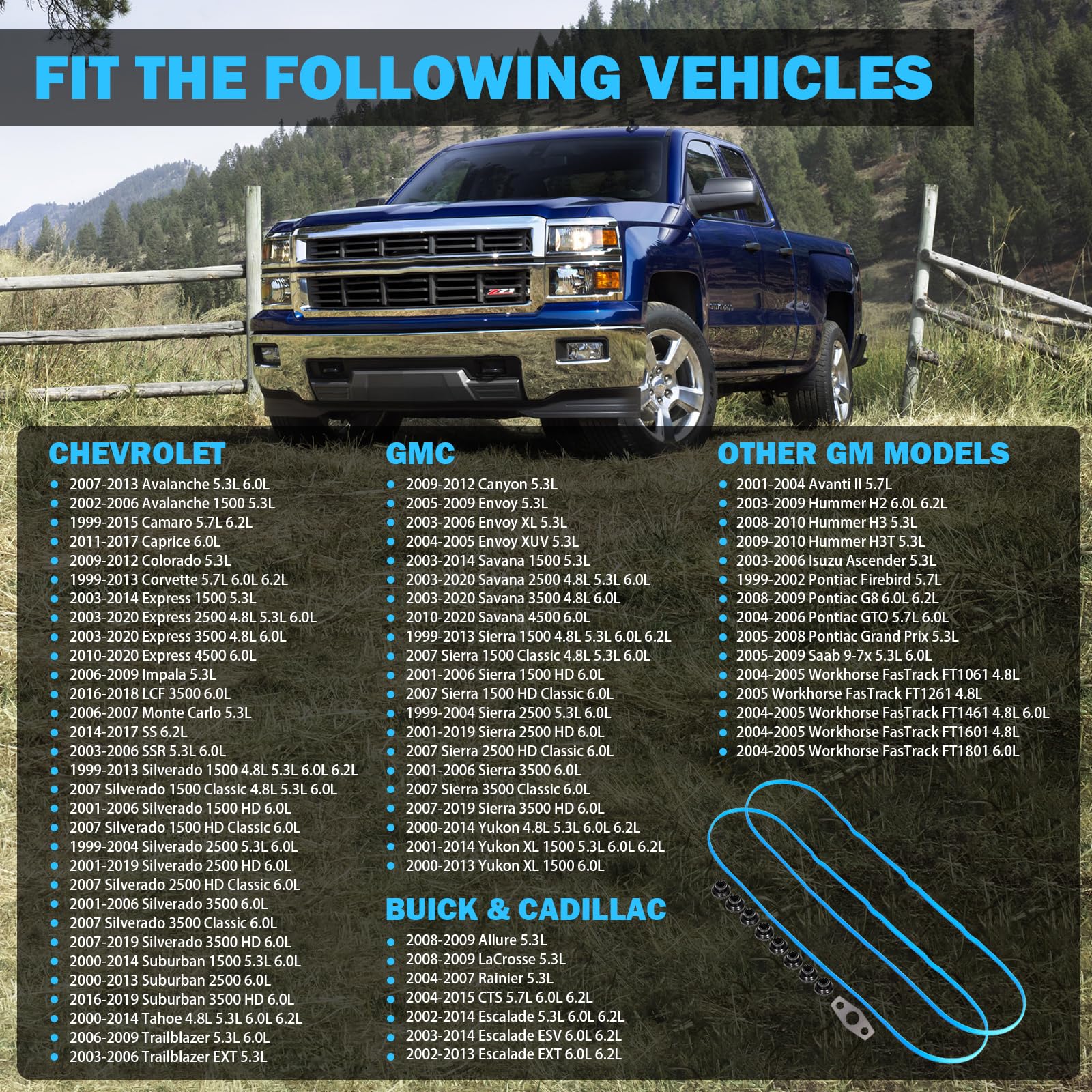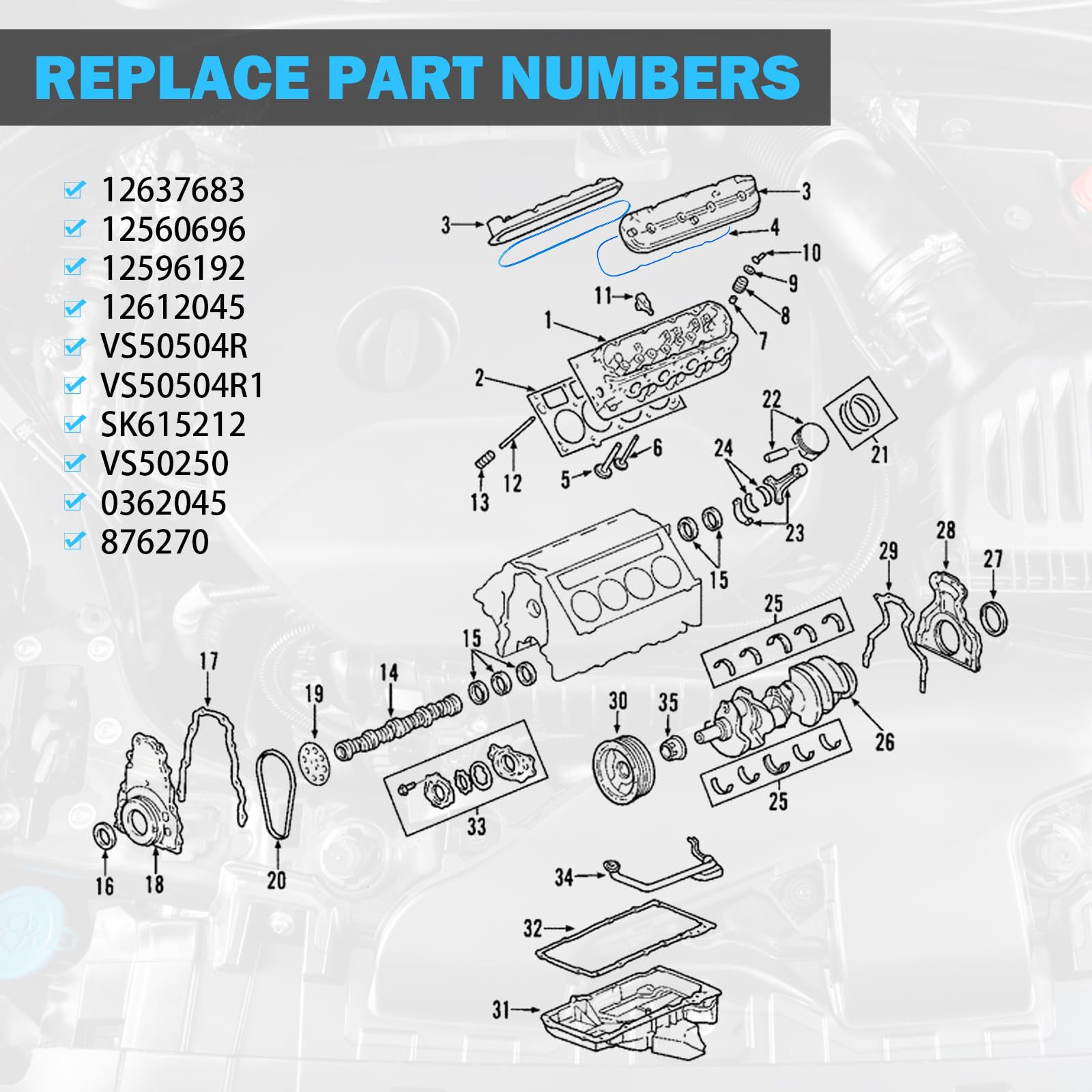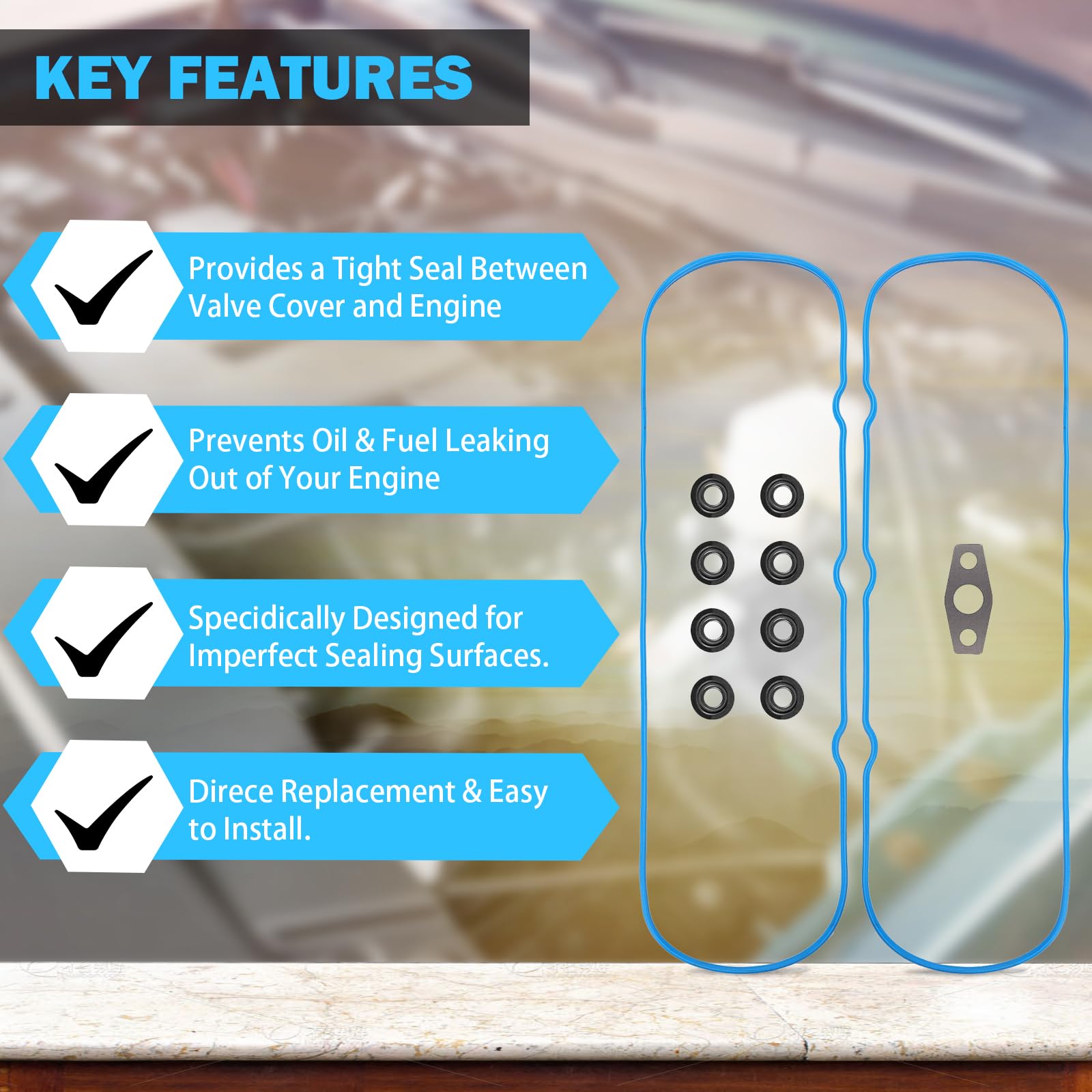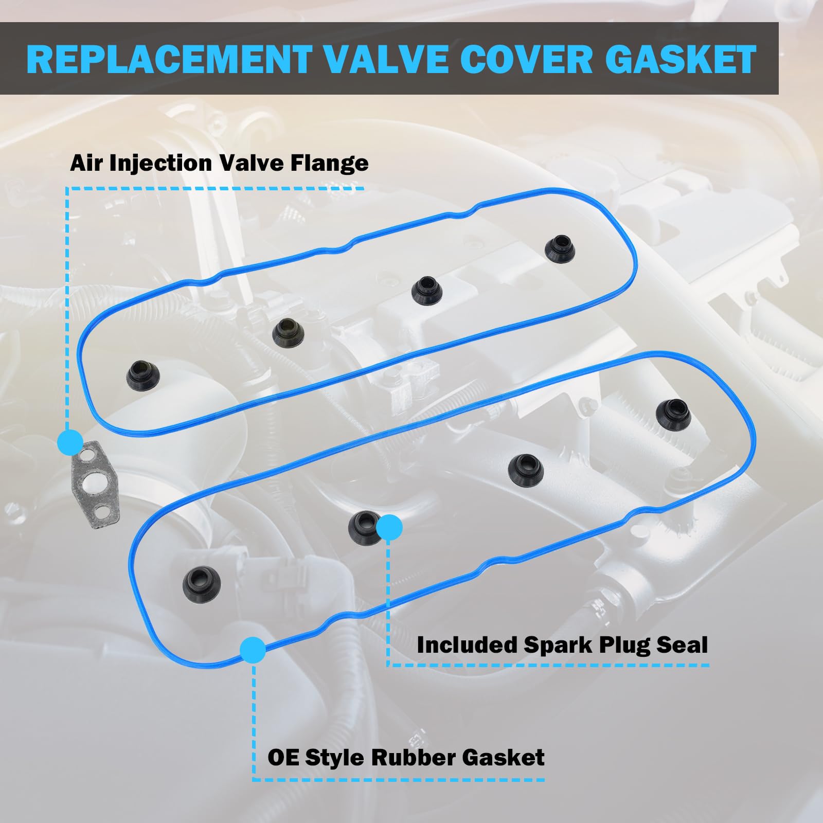 FIT THE FOLLOWING VEHICLES - Valve Cover Seal compatible with 4.8L 5.3L 5.7L 6.0L 6.2L GM Vortec engine, including Chevrolet Silverado, Suburban, Tahoe, Avalanche, Colorado, Camaro, Express, Trailblazer, Caprice, Impala, GMC Sierra, Yukon, Savana, Envoy, Canyon, Cadillac Escalade, Buick Rainier, model year 1999, 2000, 2001, 2002, 2003, 2004, 2005, 2006, 2007, 2008, 2009, 2010, 2011, 2012, 2013, 2014, 2015, 2016, 2017, 2018, 2019, 2020.