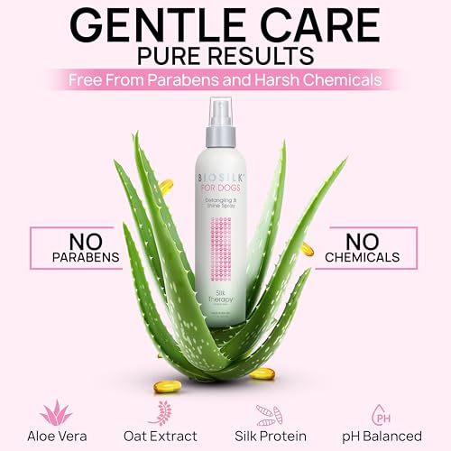 BioSilk for Dogs Detangling Spray is made to support routine grooming by helping loosen tangles and improve coat manageability. The lightweight mist is designed for leave in use and fits easily into everyday brushing routines. This grooming spray helps support smoother brushing while adding a natural looking shine without heavy residue. It is intended for regular coat care at home or between professional grooming visits. Designed for dogs and puppies, the spray works across many coat types and provides a practical option for maintaining coat comfort and appearance during frequent grooming sessions.