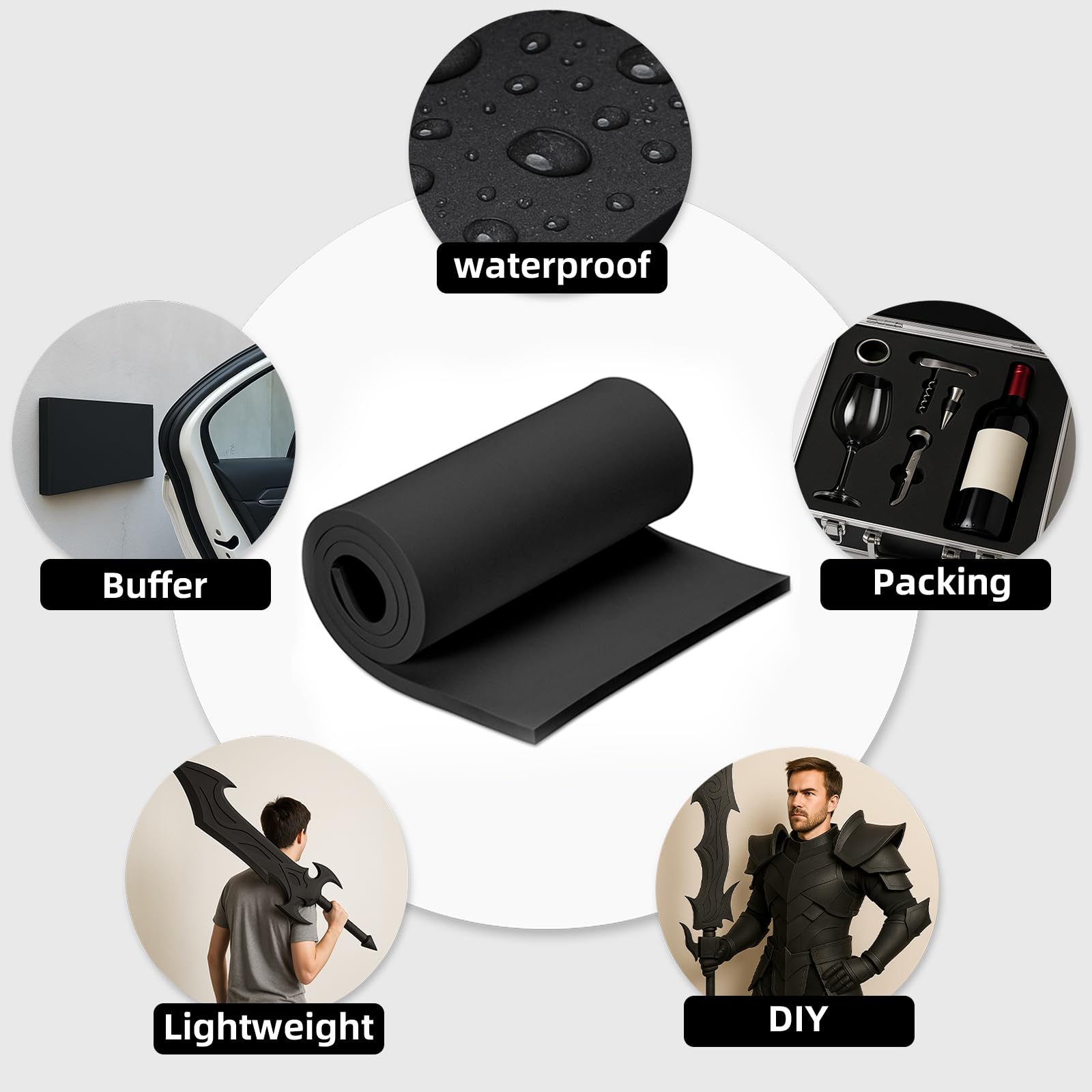 Multipurpose Foam:15mm thick EVA foam sheet is a closed cell and Cushion foam that can be used on weather stripping doors, gaskets and pipeson In the tool room. It is also easy to work with and can be conformed to any size and shape with the use of a pair of Utility knife or Cutter, making it a great tool for cosplays,padding, props, costumes and DIY craft.