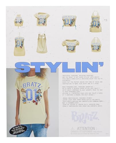 INCLUDES: 1 Bratz Stylinβ Doll,β―1 cami tee, 1 shirt, 1 skirt, 1 purse, 1 pair of sunglasses, and 1 brush - plus an adult XL graphic tee for you to customize and match your doll