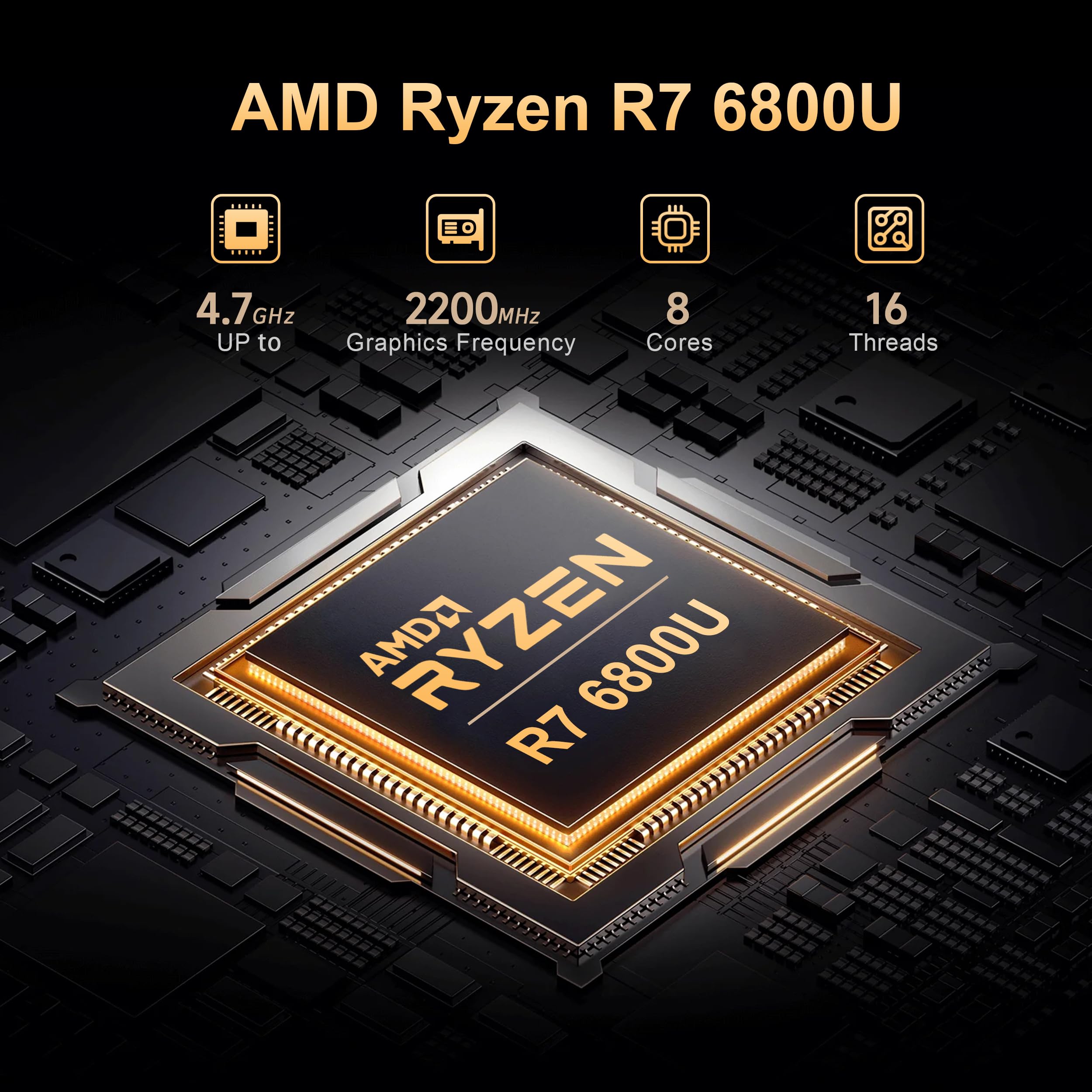 【Super Cooling Mini PC】Ryzen 7 Mini PC 6800U uses a copper tube, heat pipe and powerful fan, effectively reduce the CPU temperature in high CPU load states, at the same time, it does not reduce the CPU's benchmark computing speed, a great choice of Mini Gaming PC,The desktop computer is only 4.9 x 4.4 x 1.6 inches and takes up only 1/40 volumn of a traditional host computer, saving 90% desk space. Small and light enough to put in a bag to carry anywhere, your ideal business trip partner