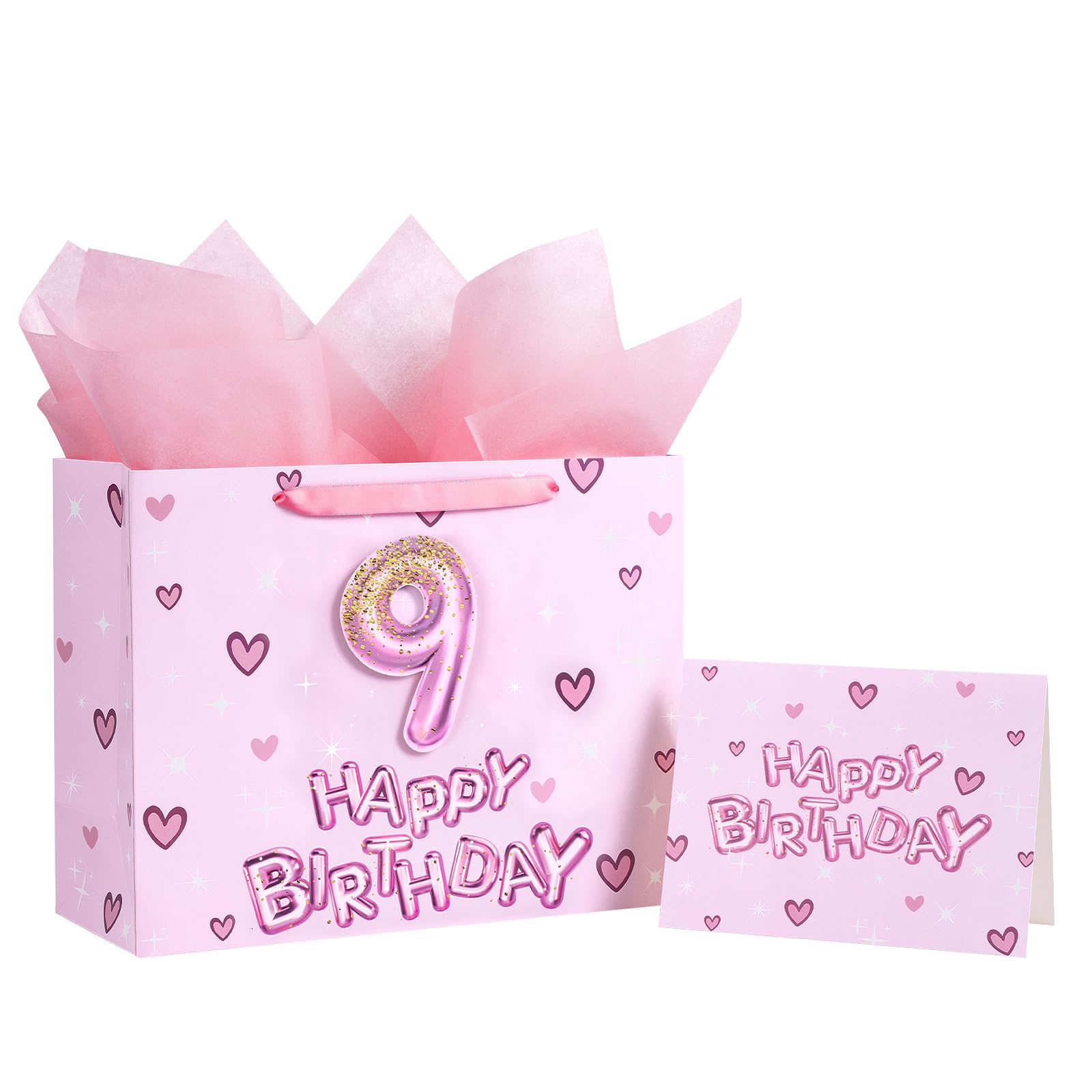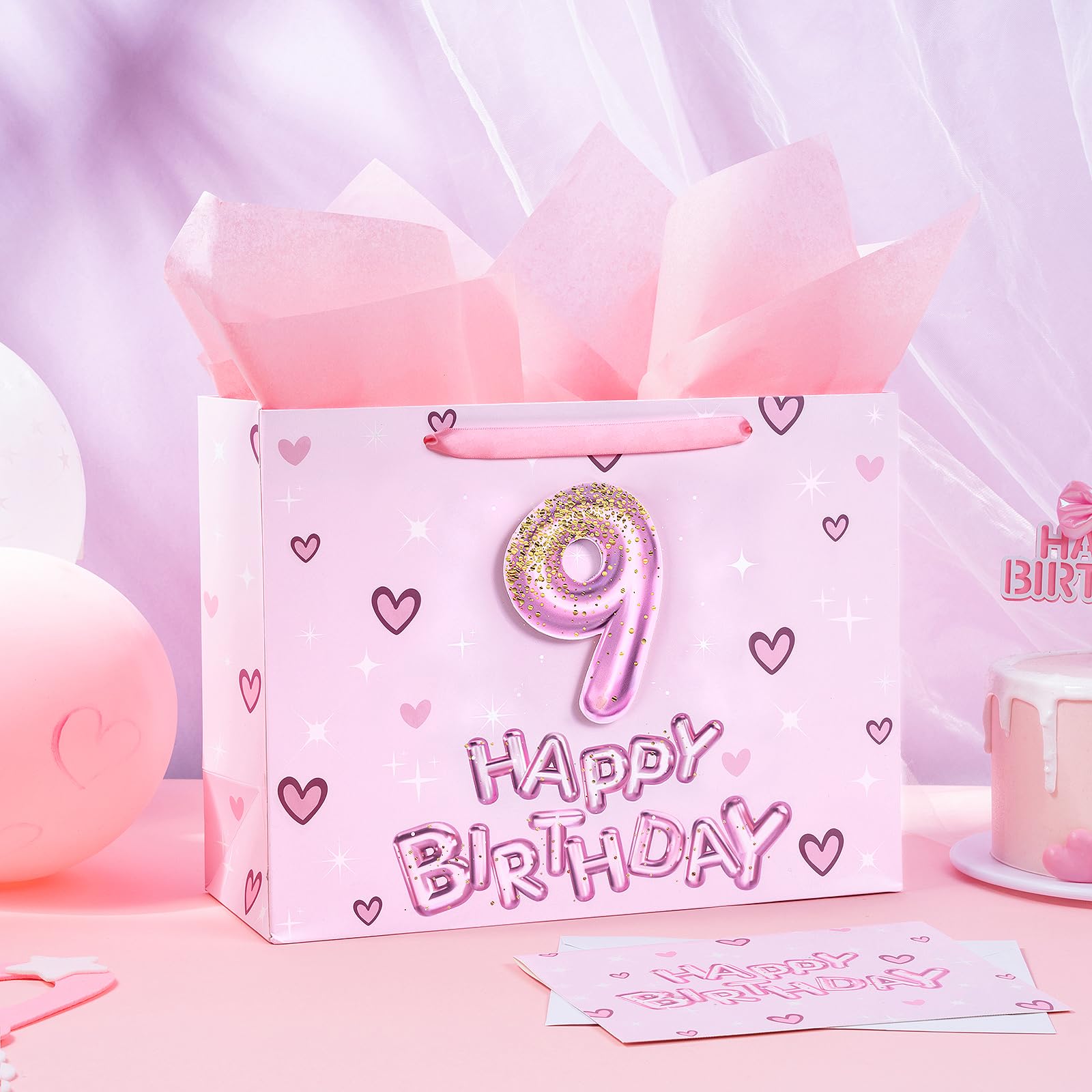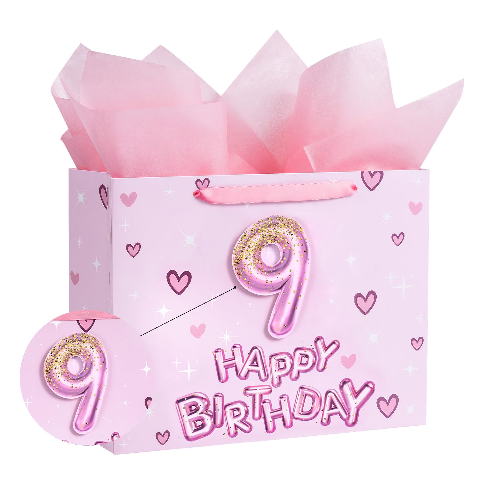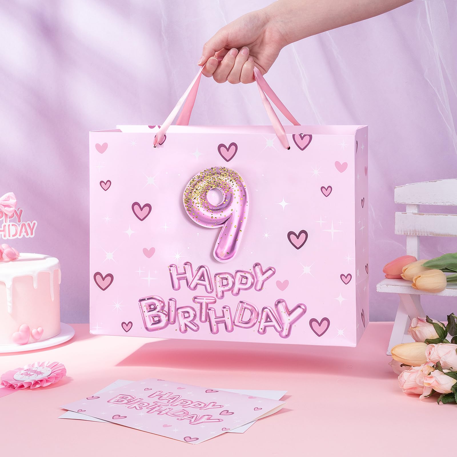 Ideal for Girls' Birthday Celebrations: This gift bag is specifically designed for girls, with its soft pink background and playful balloon design, making it perfect for 9th birthday gifts for daughters, friends or loved ones celebrating their special day