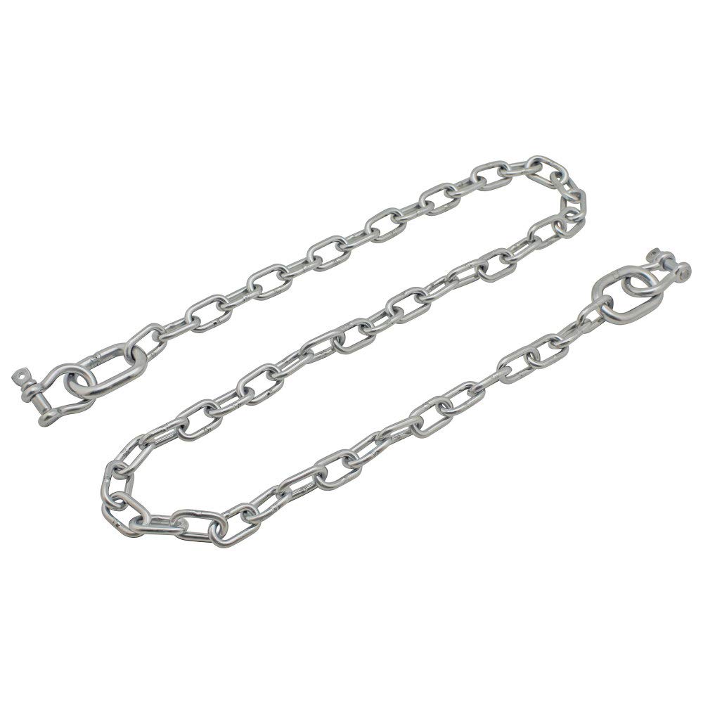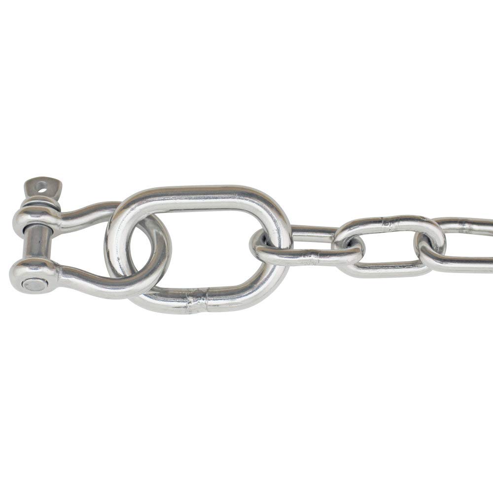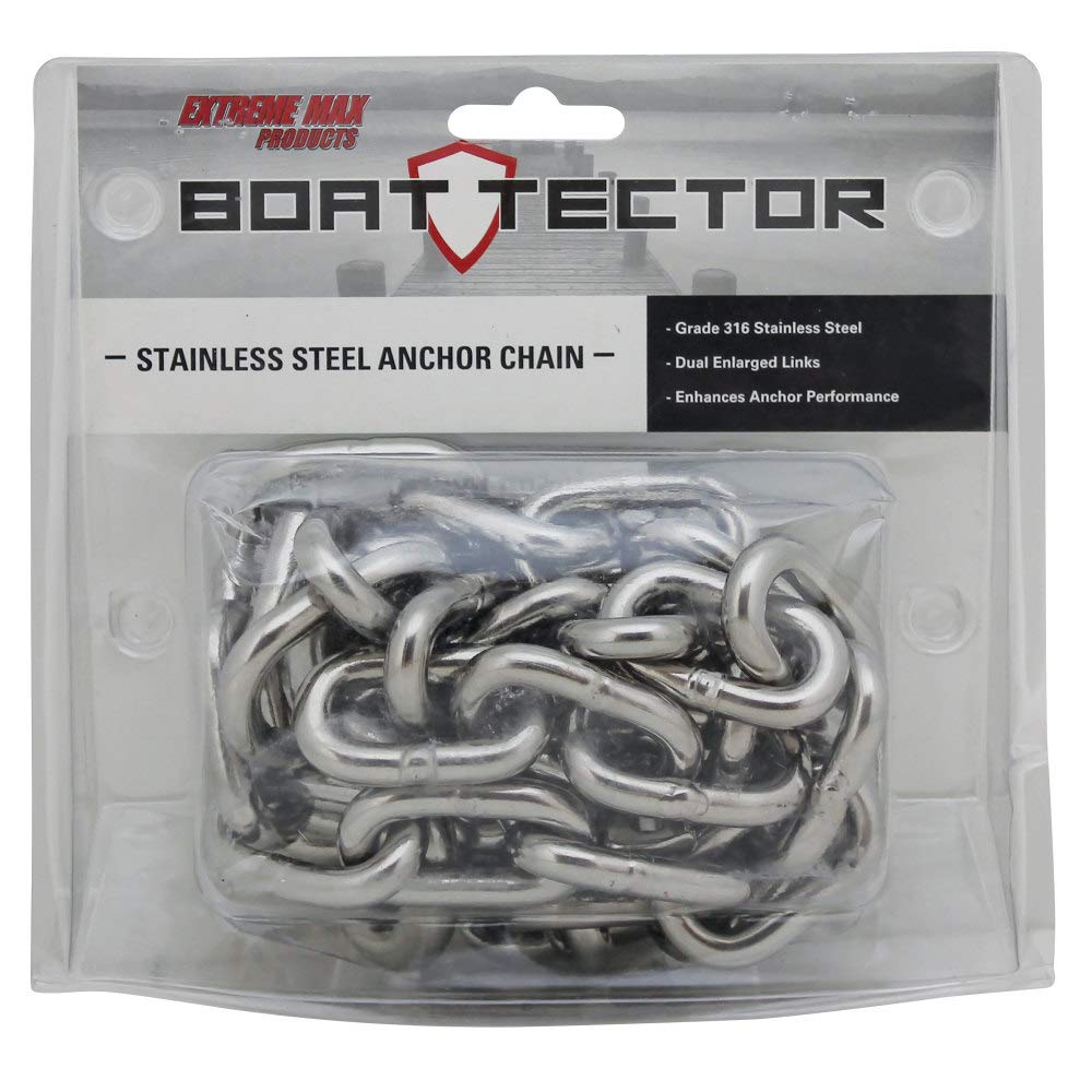 BoatTector's Stainless Steel Anchor Lead Chain is designed with oversized links and 3/8" shackles on each end to simplify attachment. Suitable for most shackle/rode combinations. The use of an anchor lead chain enhances the anchor's holding power by keeping the shank parallel to the anchoring surface, helping to eliminate unwanted pull-out or anchor freeing caused by wave motion or boat drifting. It also limits abrasion between the anchor and anchor line. Please note that this chain is not rated or designed for overhead lifting applications.