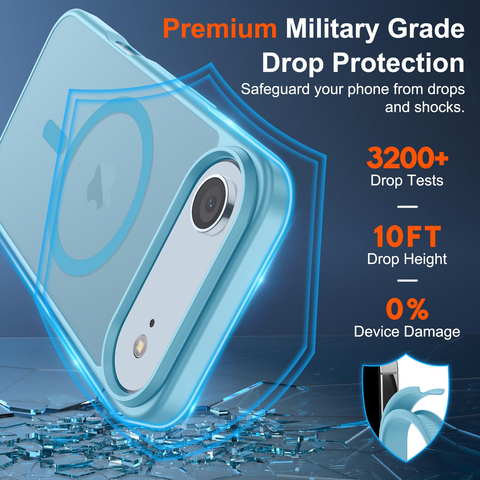 Shock Protection: Passing military drop tests up to 10 feet, your device is effectively protected from violent impacts and drops