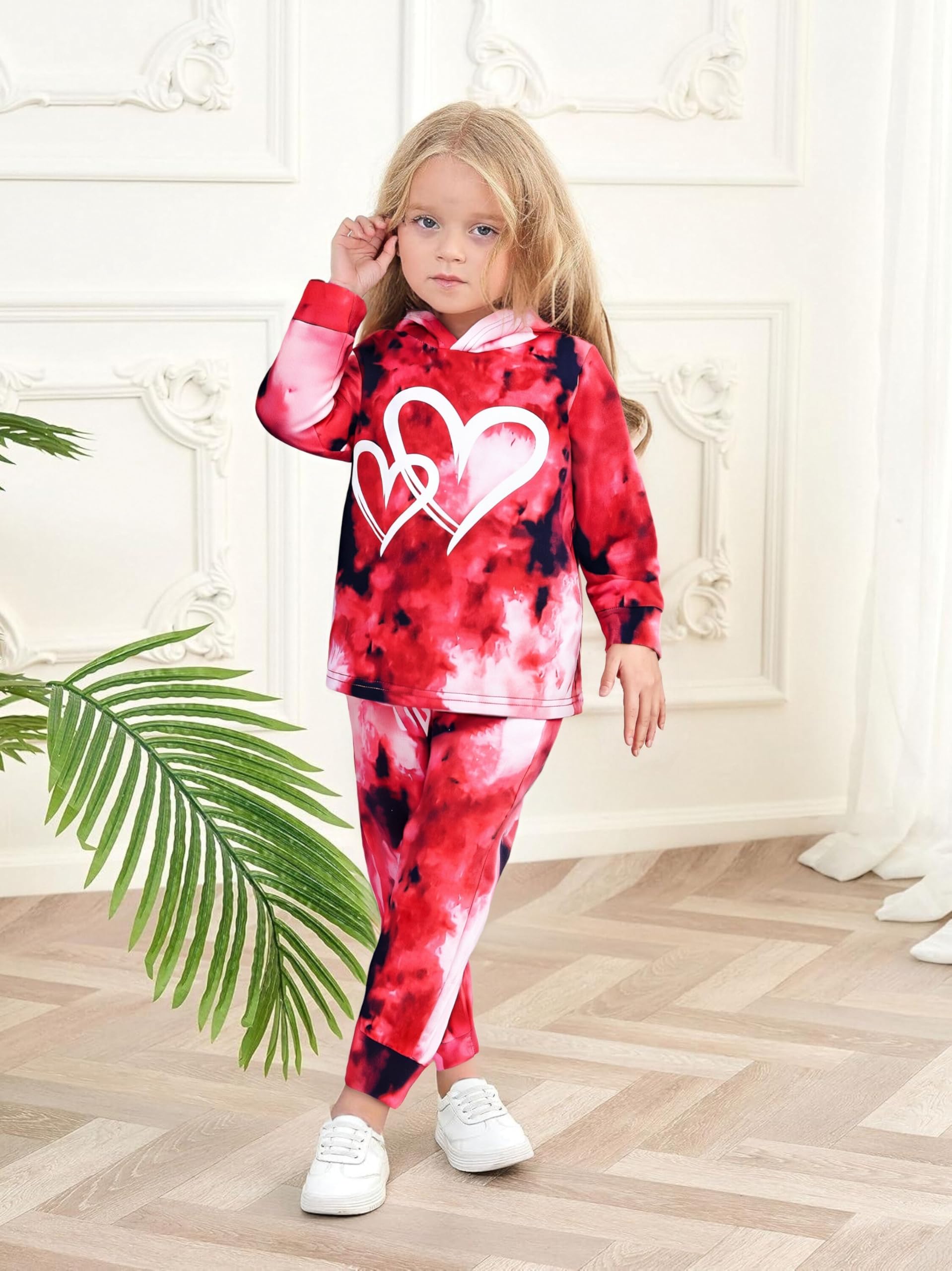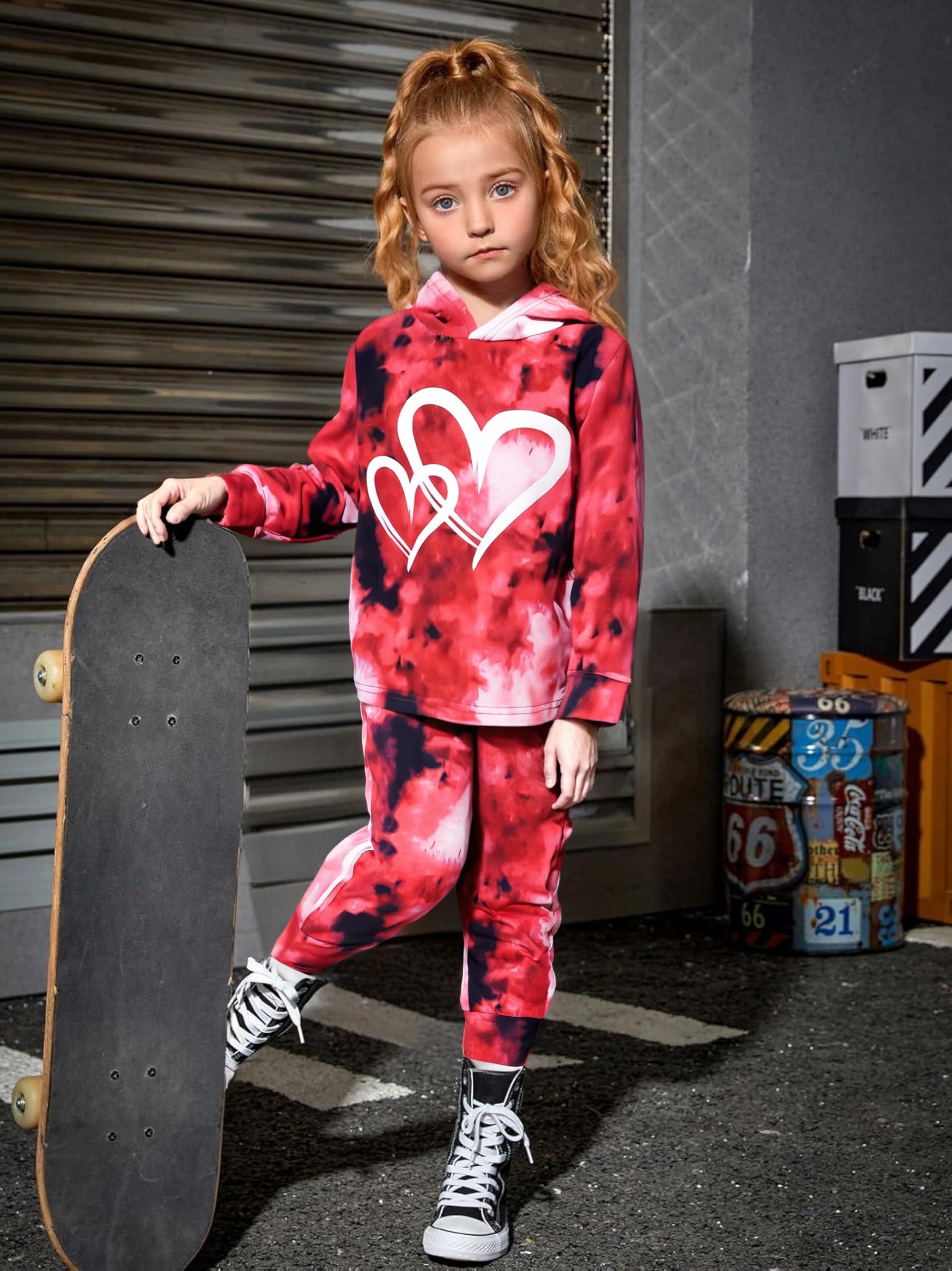 💖 Fashion Design : 2-6T Toddler Baby girl fall outfits, tie dye hoodie long sleeve sweatshirt and pants, unique heart graphic make your little girls look adorable and fashion, will be get lots of compliments.