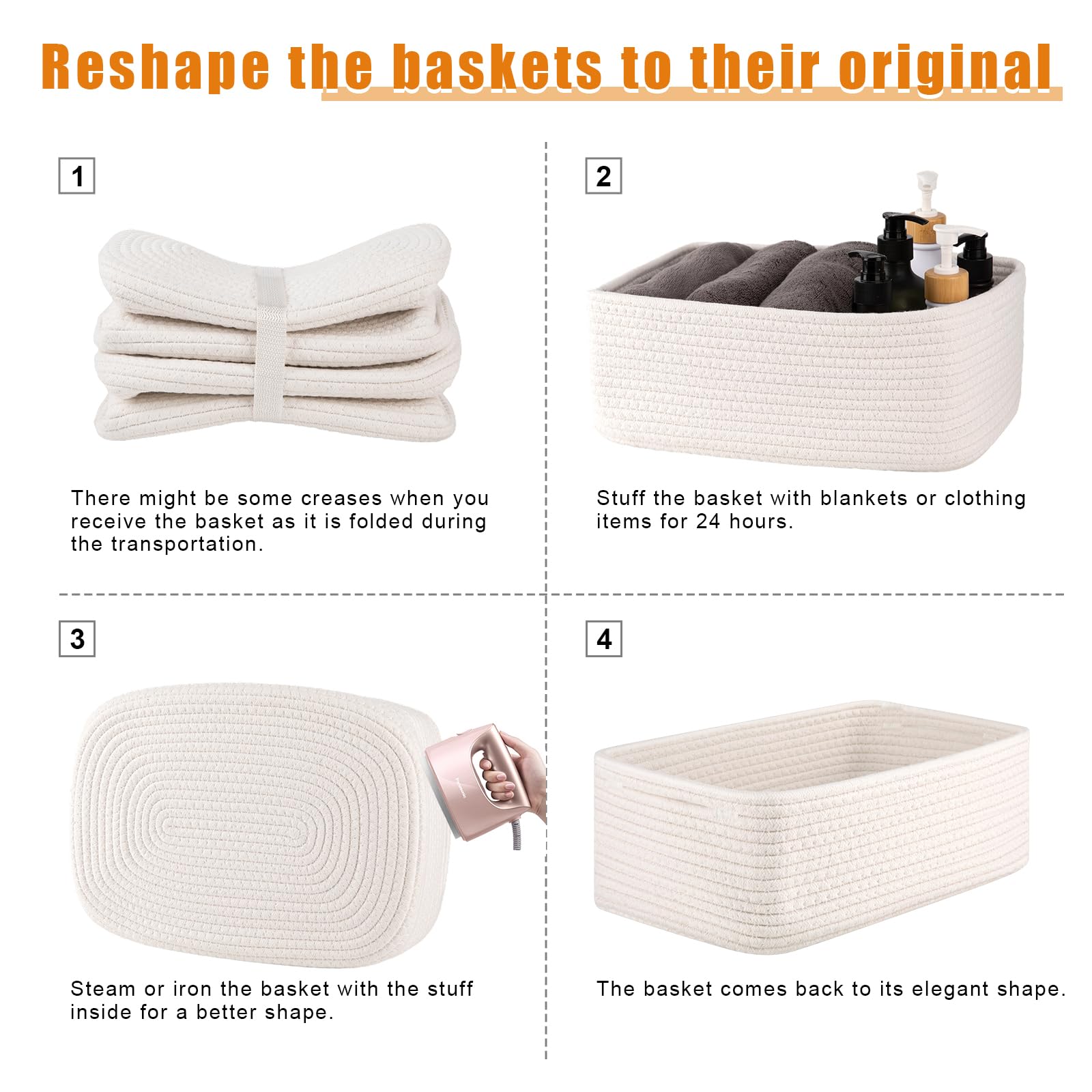 Note: OIAHOMY organizer baskets are folded for shipping. It will turn back to its elegant shape quickly by filling it with towels or blankets, and ironing is a great idea to regain the creases. Also, you can fold it into a flat shape for easy storage when not in use