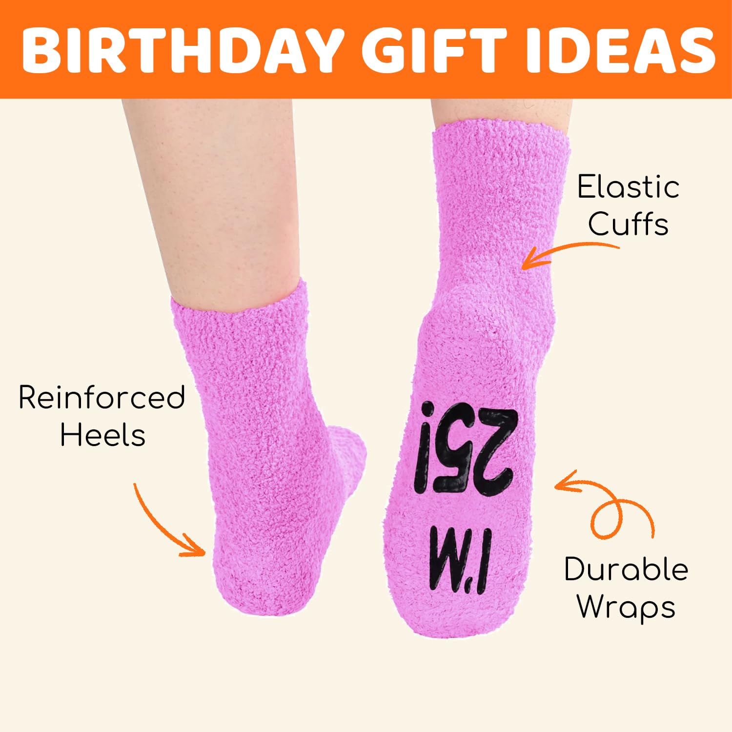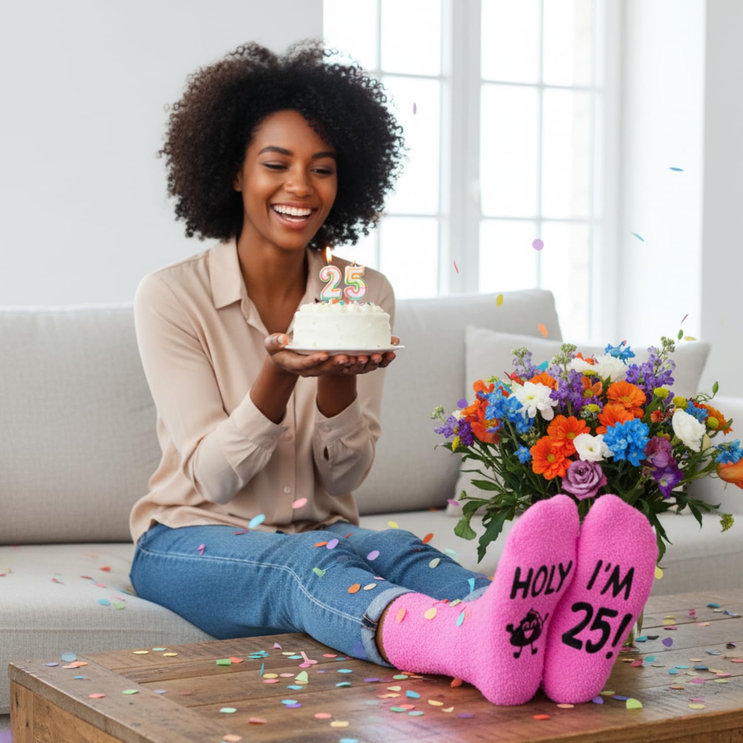 GIFTS FOR YOUNG WOMAN: Celebrate with our "HOLY I'M 25" socks. Perfect for any occasion, they make delightful Birthday, Christmas, or White Elephant presents. Express your love uniquely with these fun, festive socks.