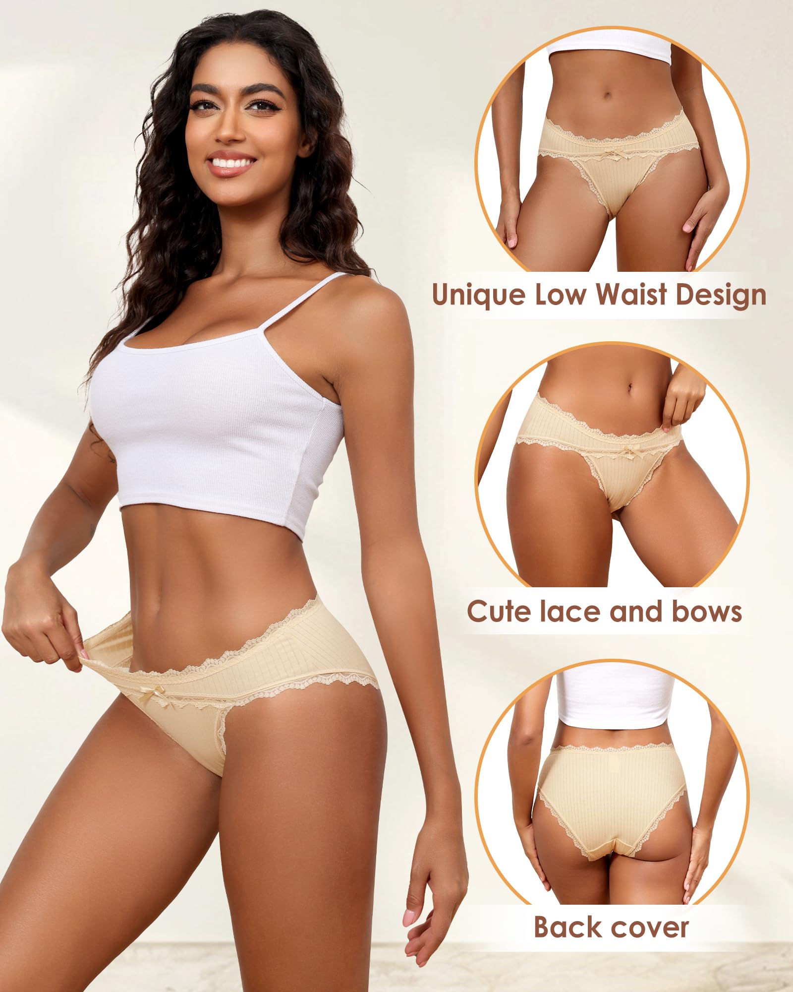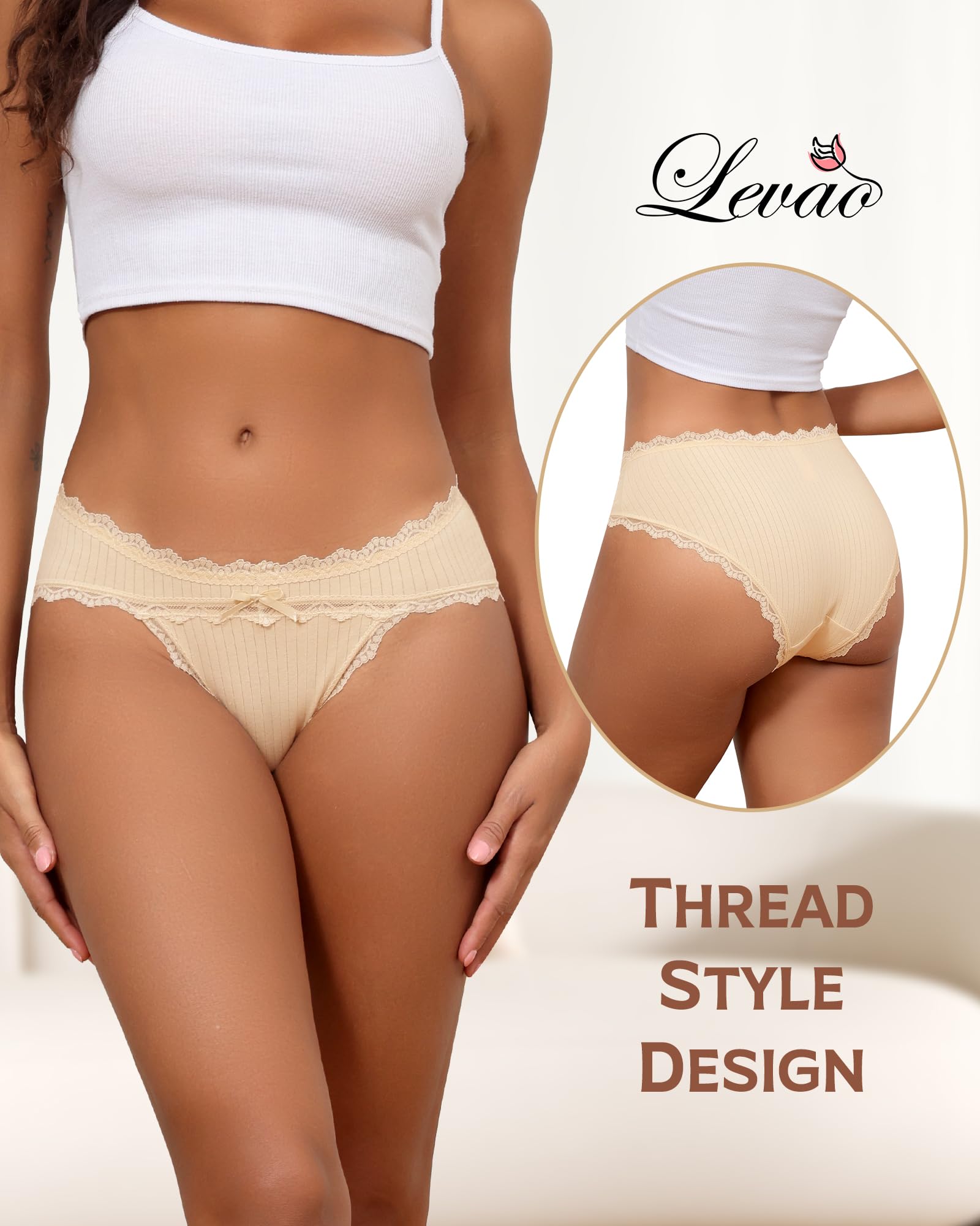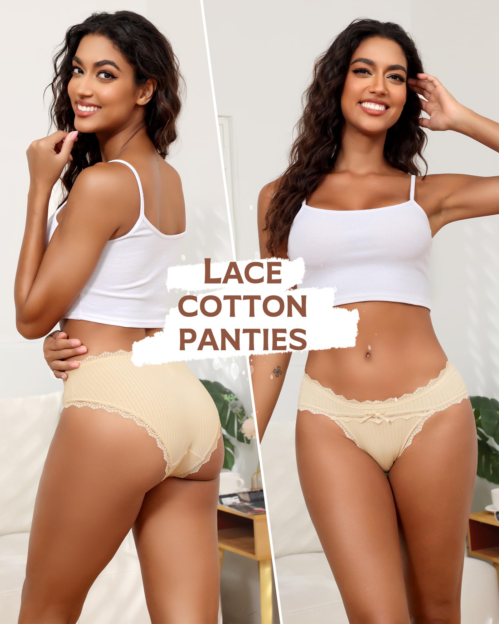 【Cheeky Cotton Lace Underwear】:Women's cotton cheeky underwear, decorated with soft lace waistband and leg wrapping, fashionable and elegant, making you feel romantic and sexy. The low-waist design can show off women's graceful curves and sexy charm, making you look exquisite
