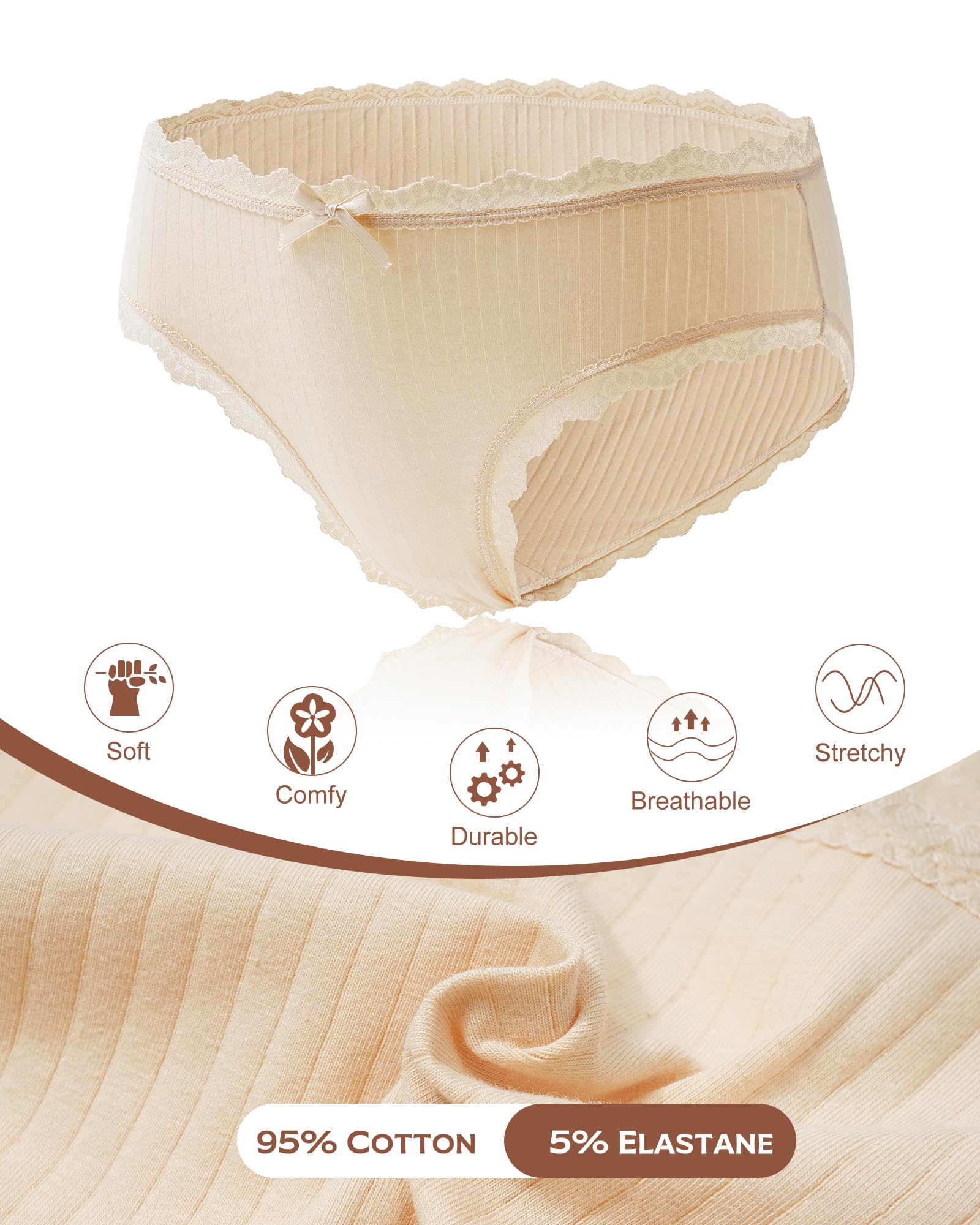 【Cotton Breathable Material】:Made of 95% cotton and 5% elastane,Cotton Crotch, this material is super soft, stretchy, moisture-wicking, and lightweight, yet low maintenance. These cute cotton bikini bottoms provide great coverage and fit naturally around your waist and hips
