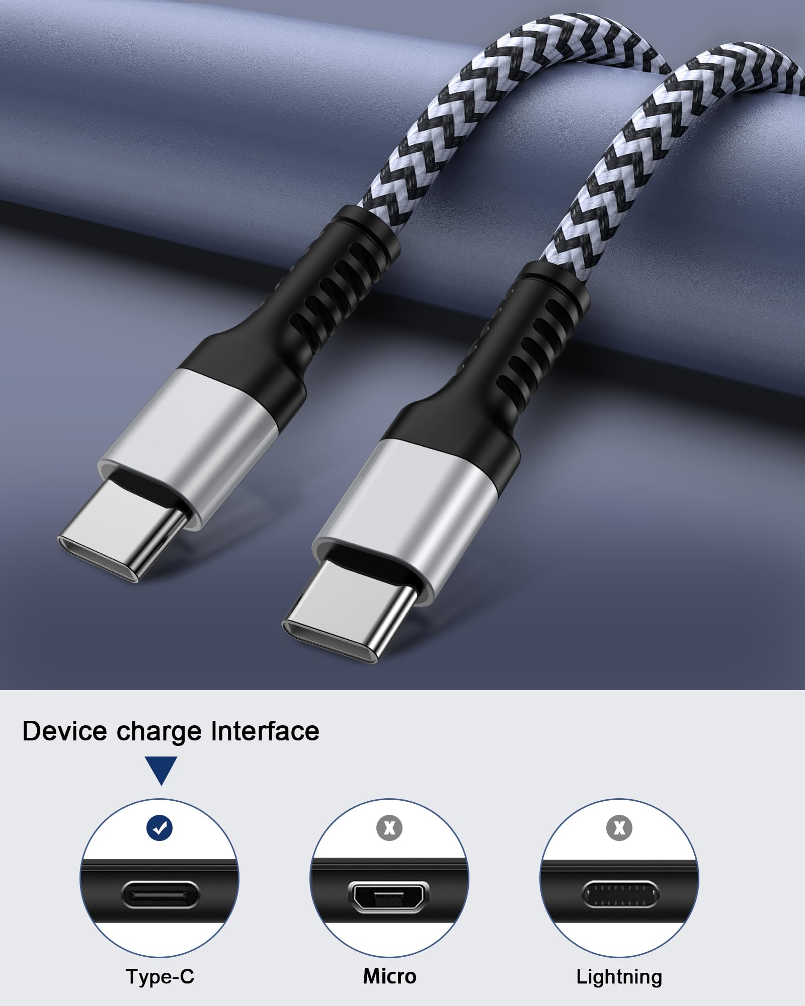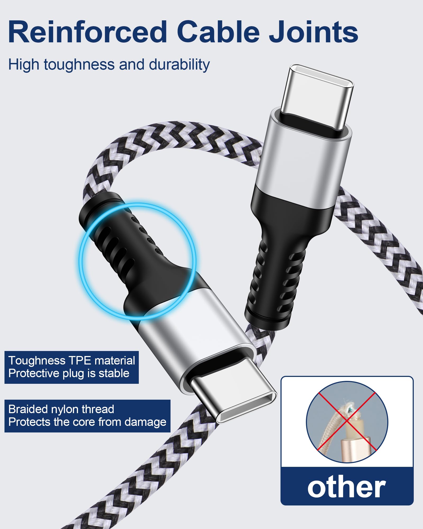 【Fast and Safe】: The high-quality copper wire improves the charging and data transmission speed, lets you enjoy 20W fast charging and 480Mbps data transfer, and can power up most USB-C Phones from 0% to 50% within 30 minutes. This type c to c fast charging cable can provides stable voltage and current protection to ensure safety at the full fast charge.