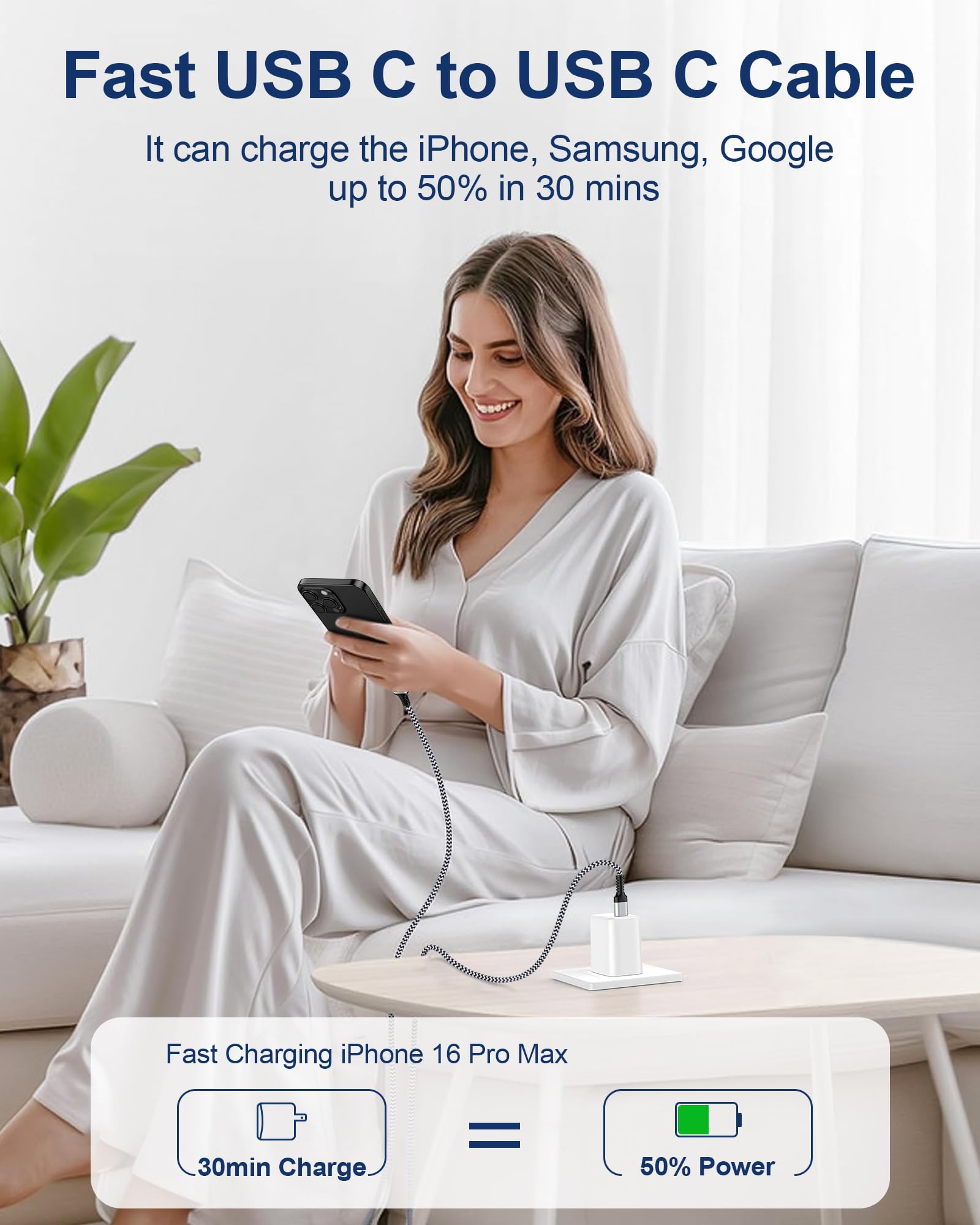 【Universal Compatibility】: Apple USB C Charging Cable provides high-speed charging for Type-C smartphones, tablets, and laptops, including iPhone 17, 17Pro Max, Air, 16, 16e, 16 Pro, 16Pro Max, 16 Plus, iPhone 15, 15 Pro, 15Pro Max, 15 Plus, iPad Pro 13 inch(2024)/12.9 inch 6th 5th 4th 3rd gen, iPad Pro 11 inch (2024)/11 inch 4th 3rd 2nd 1st, iPad Air 13/11 inch(2024), iPad Air 5th 4th, iPad Mini 6, iPad 10, Galaxy S25 Ultra, S25, S24, S23 Ultra, S22, S21, Pixel 10, 9 Pro XL, 9, 9 Pro, 9 Pro Fold, 8, 7 Pro, 7, 6a and any USB-C device.