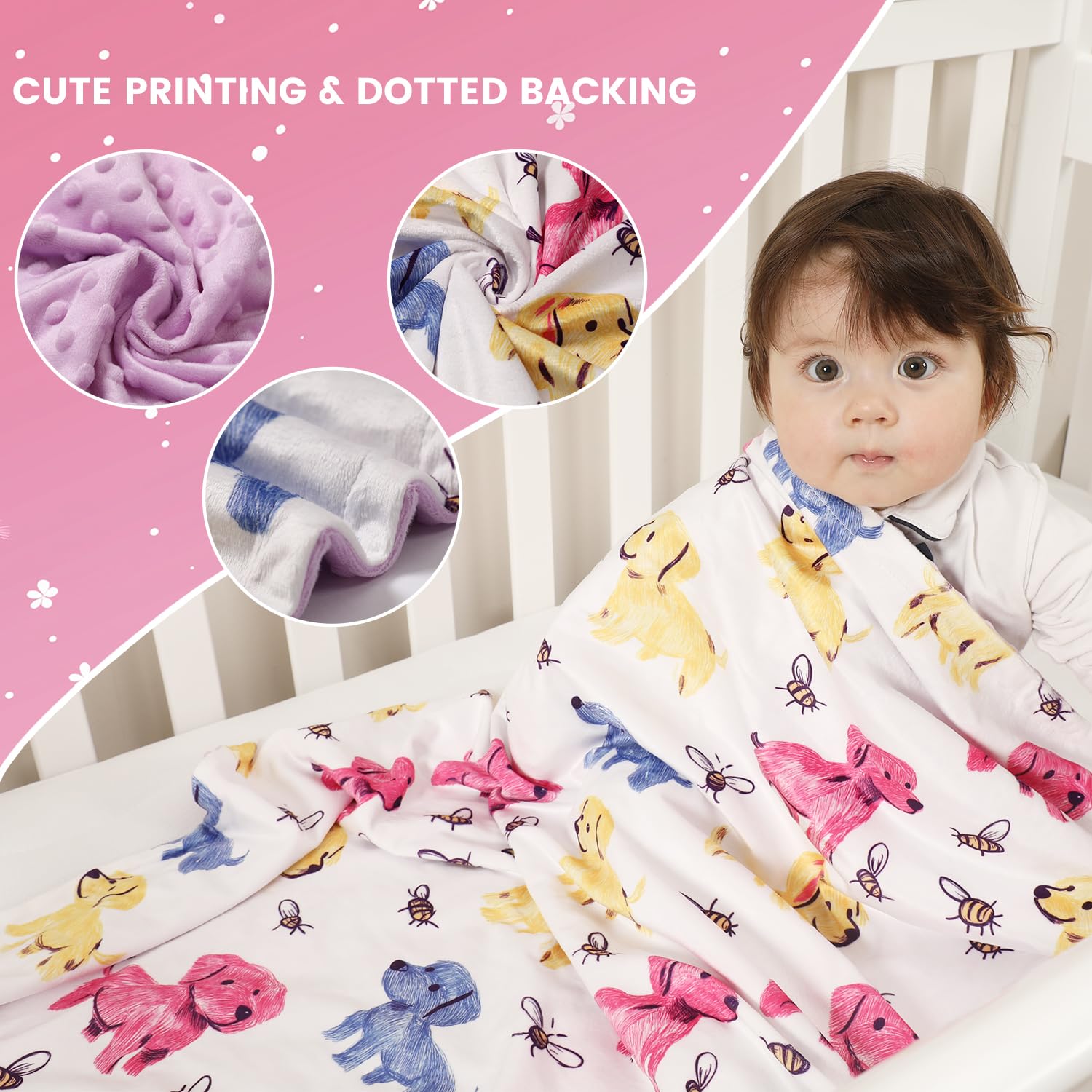 PERFECT DOUBLE-LAYER DESIGN: Beautiful and lovely printed pattern on one side, and dotted backing design on the other side. Has a good soothing effect on your baby.