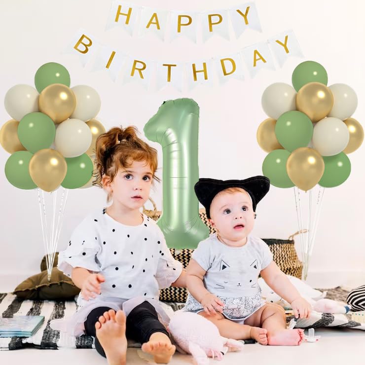 【PREMIUM MATERIAL】Sage Green first birthday balloons set are made of high-quality and Eco-Friendly natural foil and latex balloons, thick and resilient.These birthday balloons can be filled with air or helium.