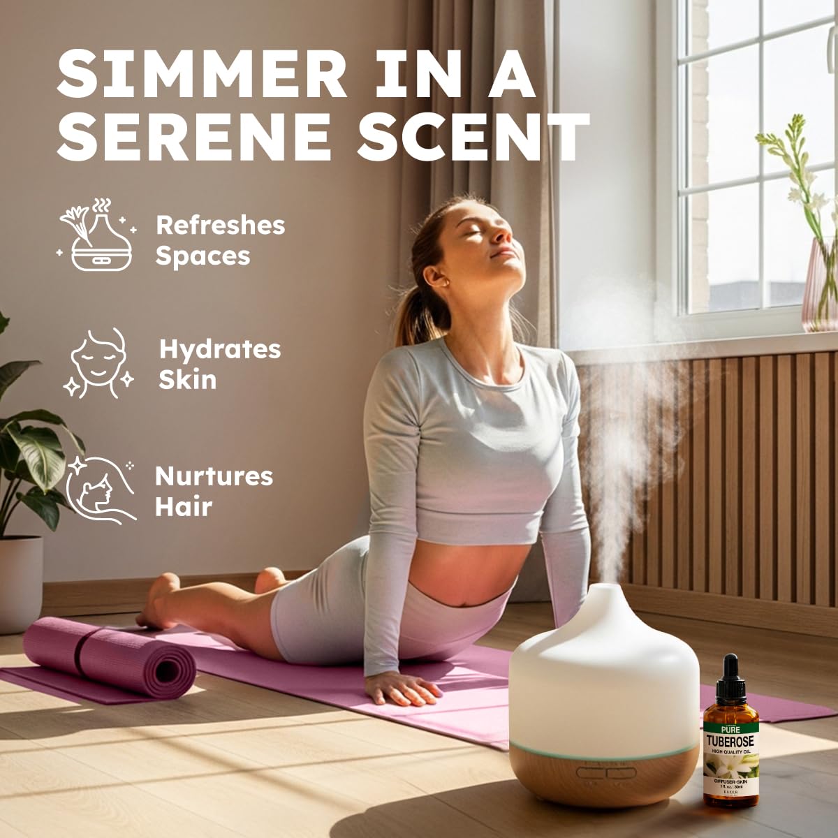 Fragrant inspiration that fuels your practice. Enhance your yoga or meditation sessions with tuberose essential oil for diffuser use. The aromatic, soothing scent helps create a serene environment for better relaxation to fuel your work.