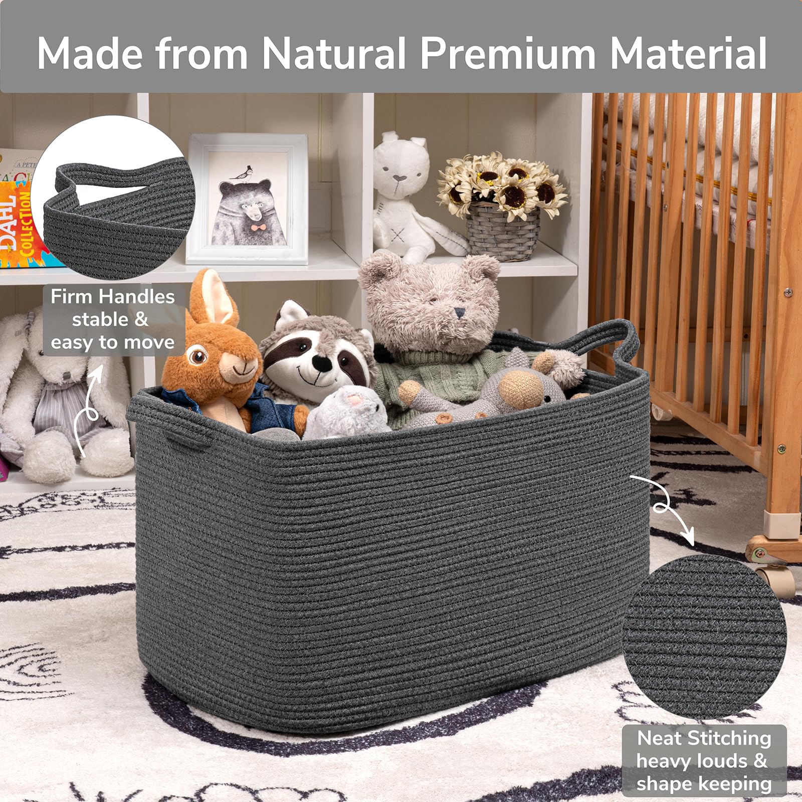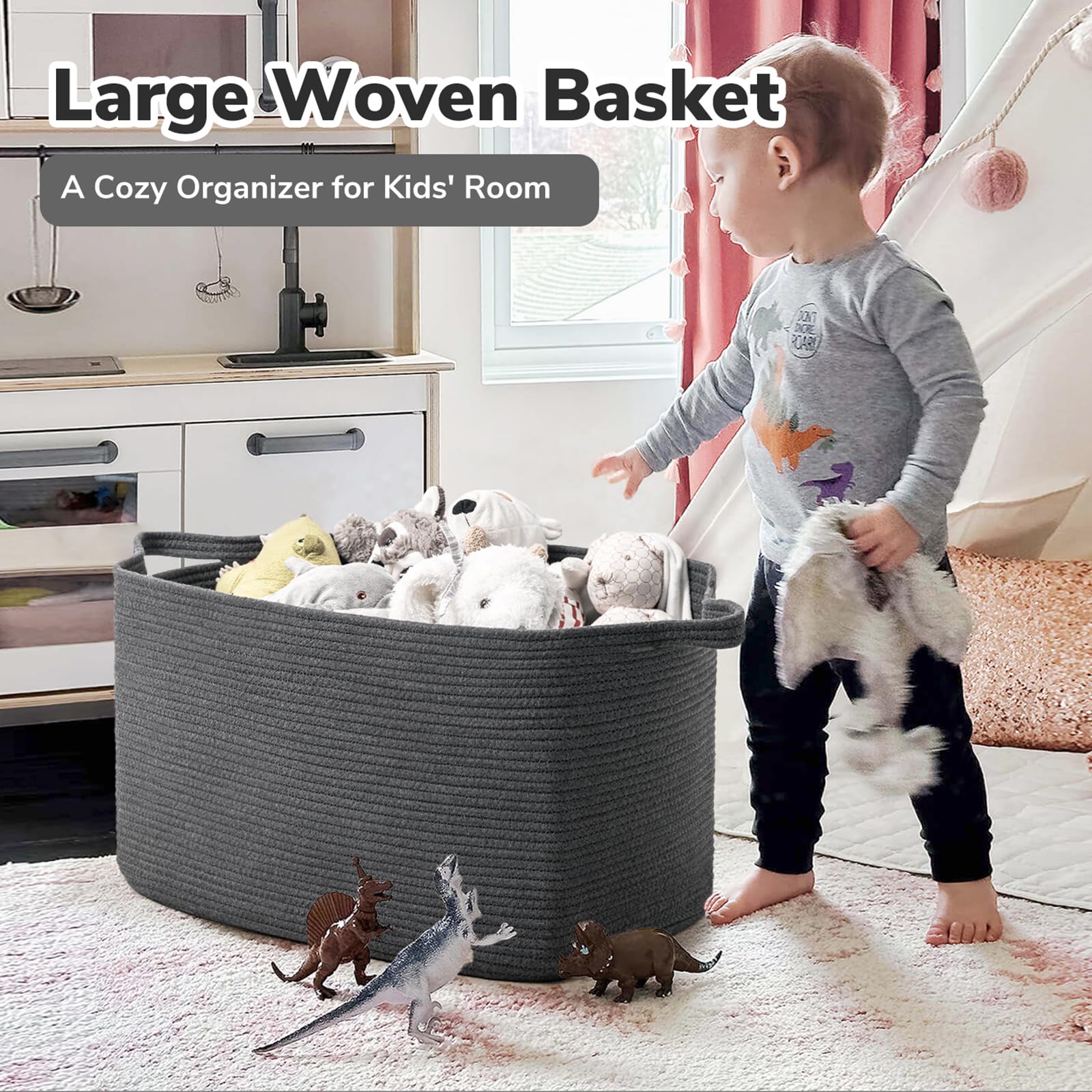 Goodpick Storage Basket, Rectangle Dirty Clothes Baskets for Laundry, Woven Basket for Living Room, Extra Large Cotton Rope Baskets for Toys, Blankets, 23.6" x 15.7" x 13.8", Dark Gray