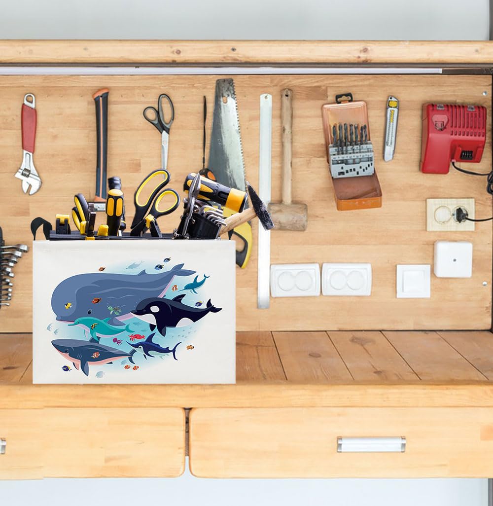 MULTI-PURPOSE:Canvas tropical Storage Bins are a perfect way to accessorize, organize, and store items at home, office Ideal toy bins or shelf baskets for cube storage organizer shelves, cubbies, bookcase, desk, or floor. Sturdy wire frame stands up to everyday use in shelves, kids' home store, bathrooms, bedrooms, laundry rooms or closets.