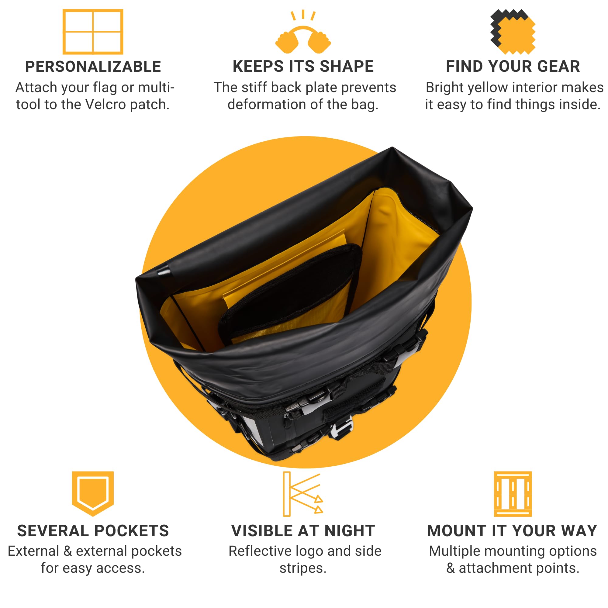 [HEAVY DUTY Dirt Bike Bag] Ride your motorbike off a cliff and at least this universal panniers bike bags will survive. Thanks to its welded Hypalon construction and stiffened back plate its a great saddle bags motorcycles for the adventurous rider.