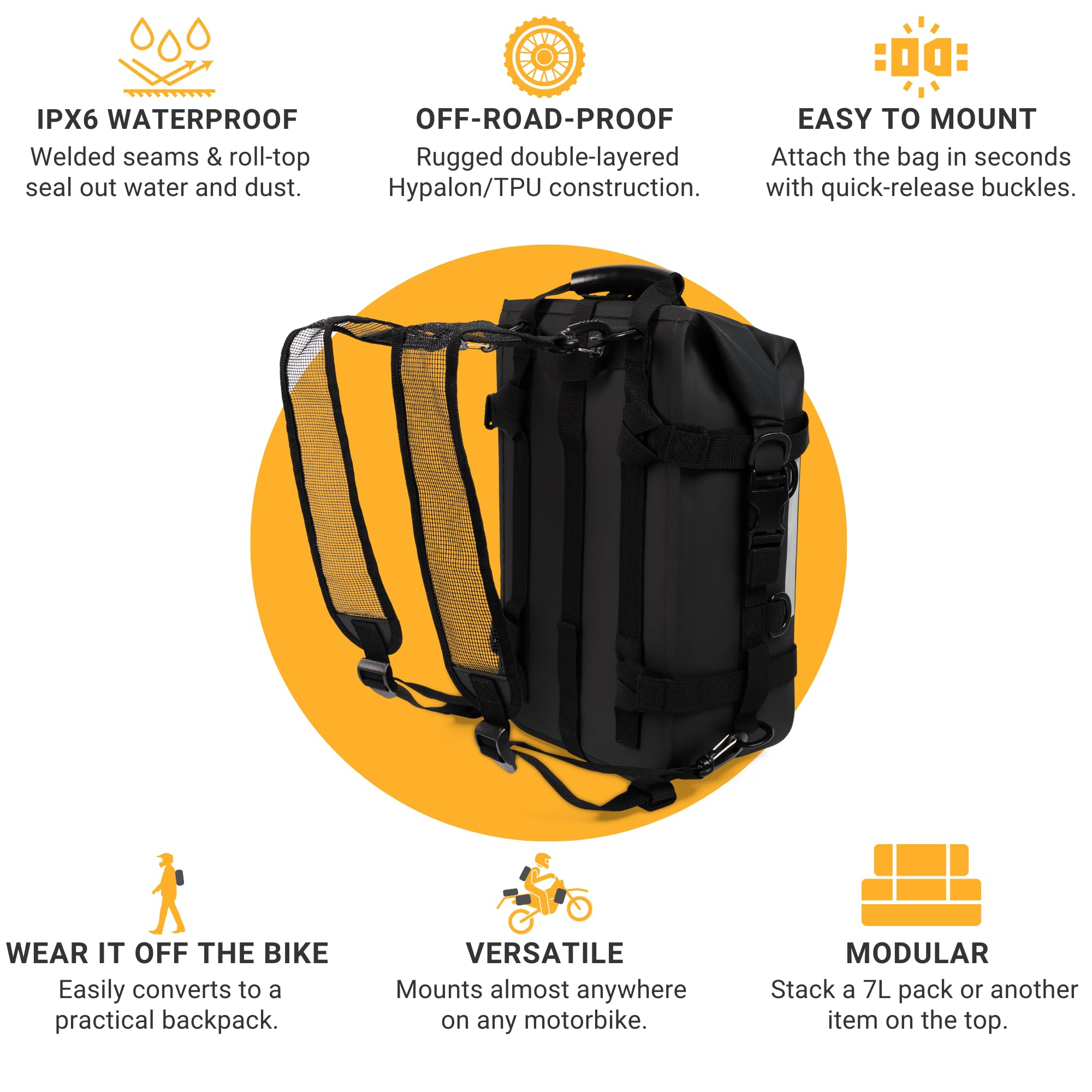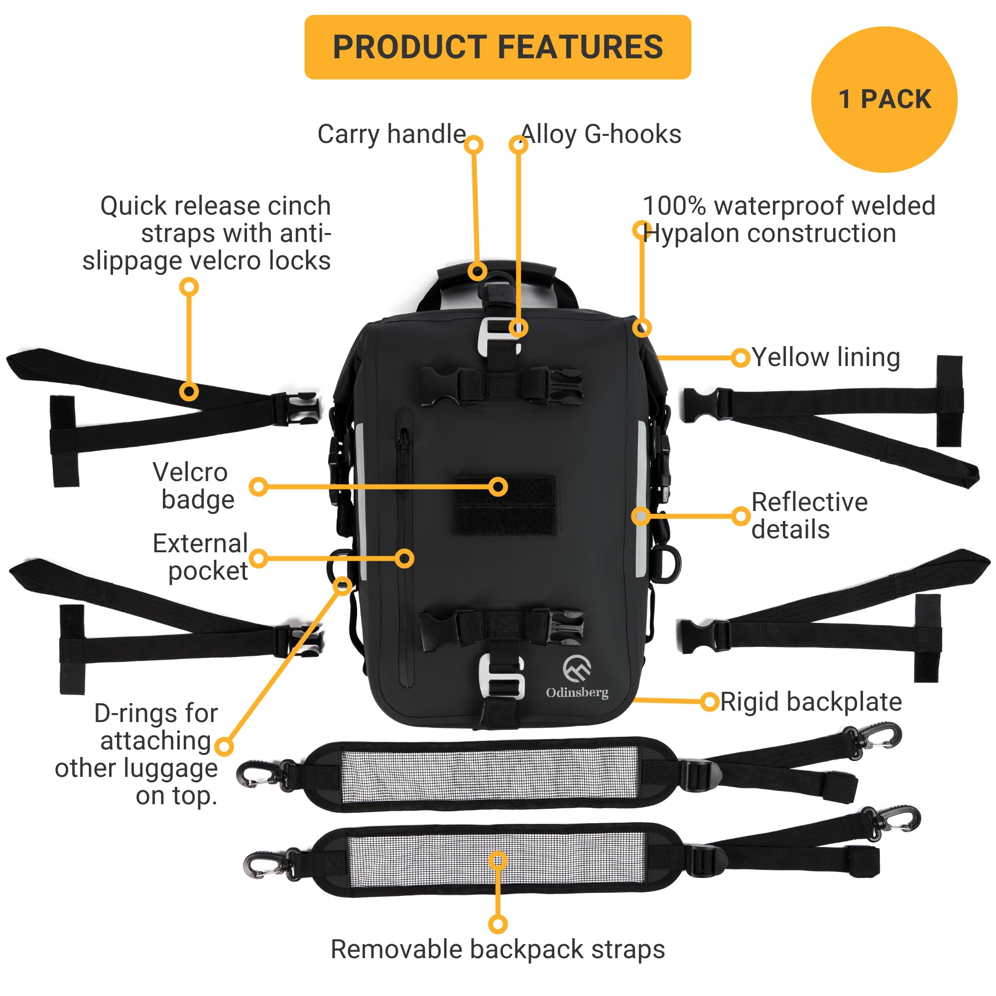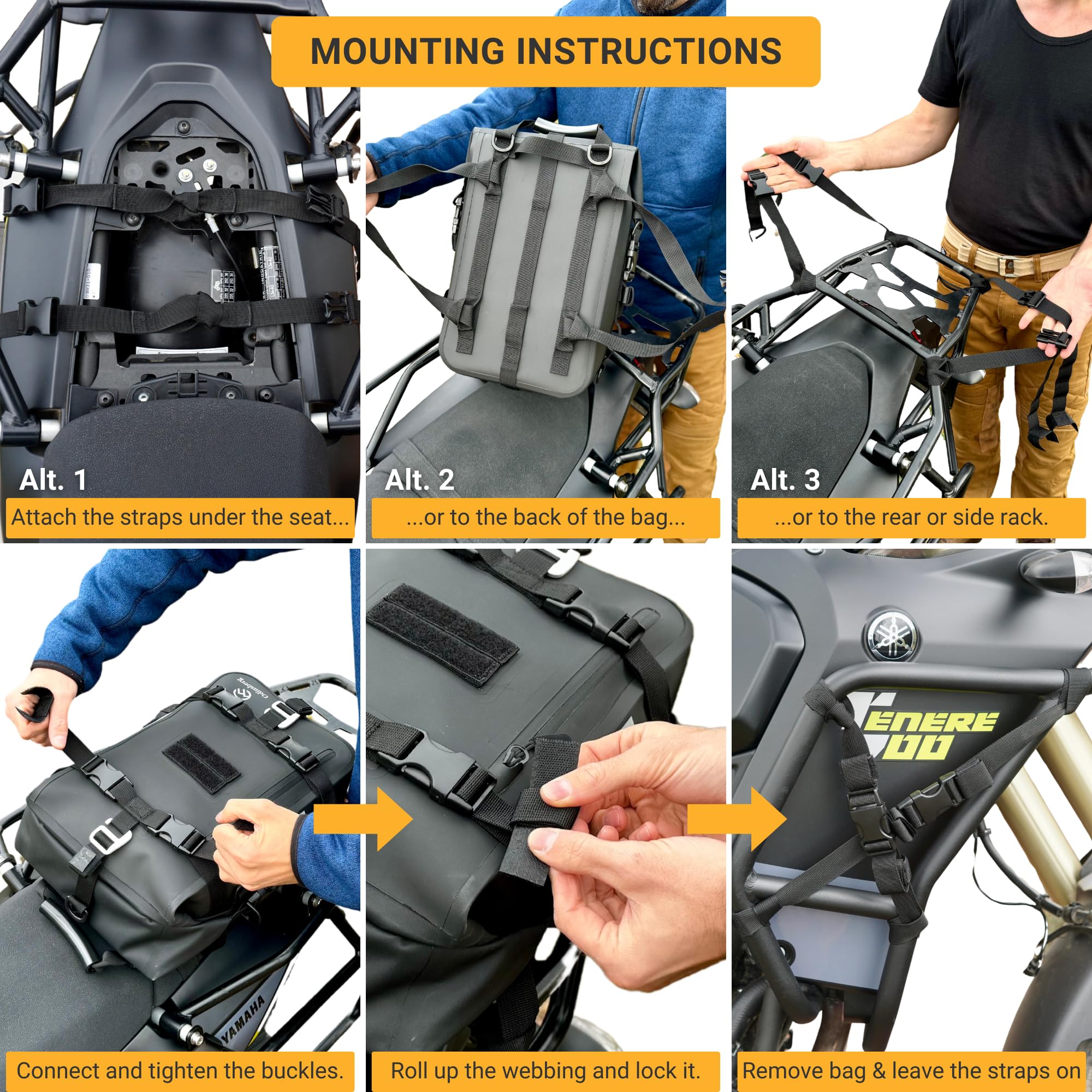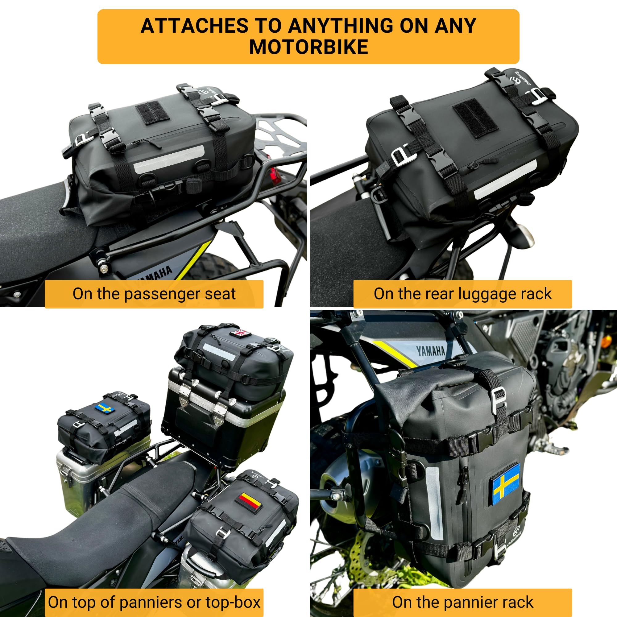 [TRAVEL LIGHT with this Motorcycle Luggage Bag] Strap one or more of the Ragnarök motorcycle saddle bag directly to your bike and use it as a motorcycle side bag, dirt bike bag, enduro tail bag, ATV bag or large sissy bar bag for your daily adventures.