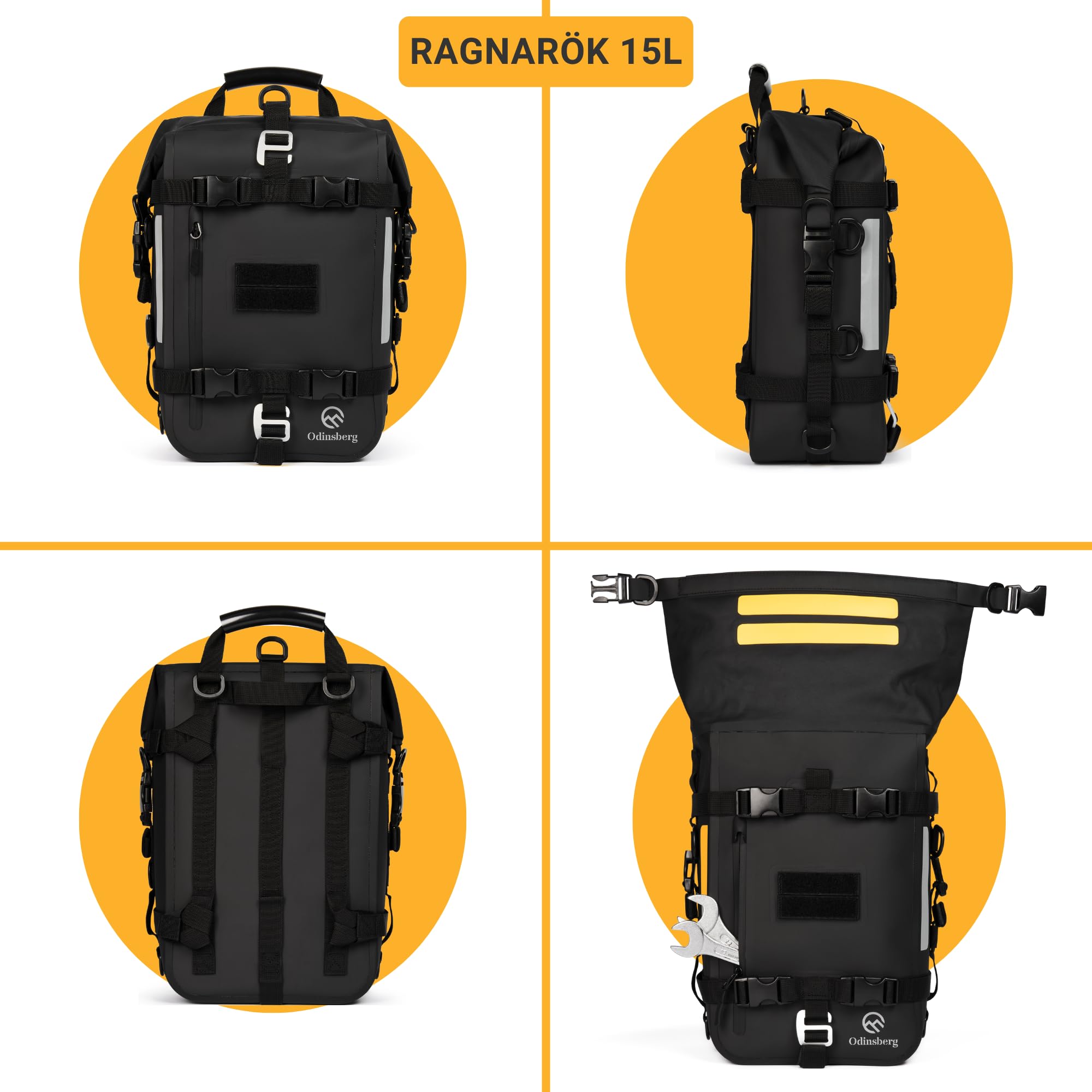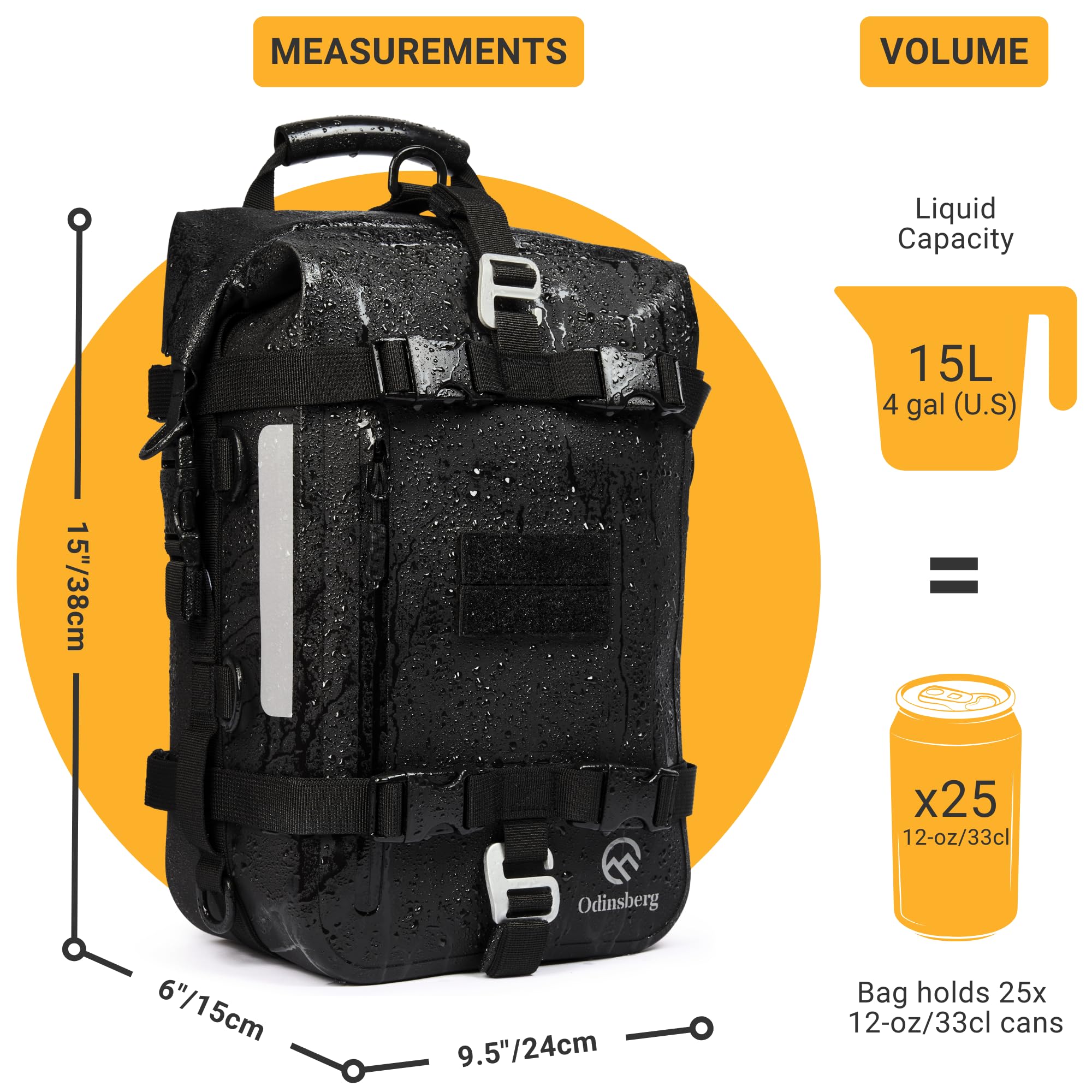 [Motorcycle Backpack Waterproof] Ride through thunderstorms or river crossings. The IPX6 level welded 15L universal motorcycle saddlebags waterproof is a great motorcycle storage bag for rear and will withstand any water as long as it's not completely submerged for long.