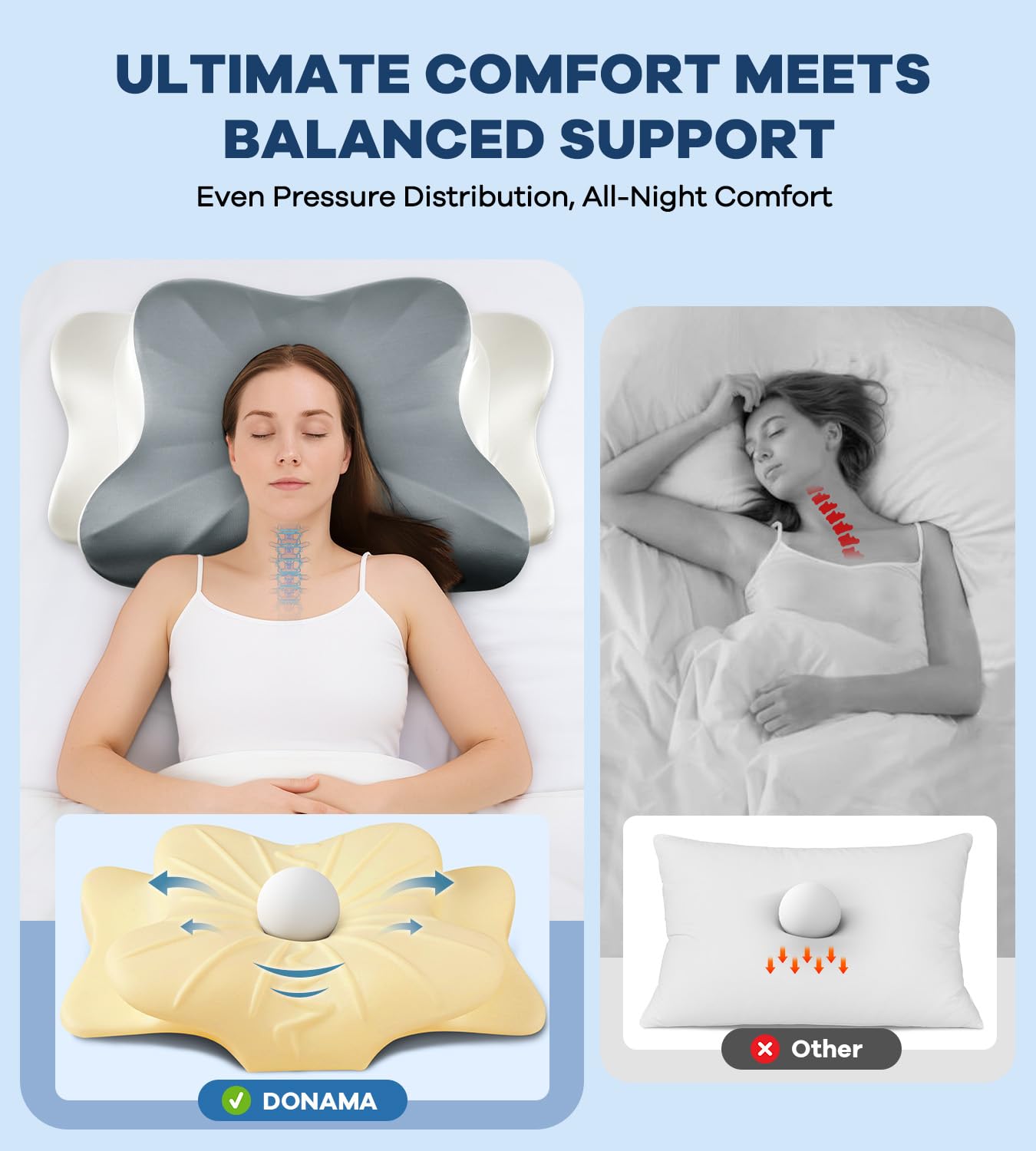 【A SLEEP SAVIOR REALLY HELP】Pick out a great cervical neck pillows,you may find your sleeping quality improves unexpectedly. DONAMA brand pillows have been proven in the market for many years, and the pillows developed have helped many people sleep comfortably throughout the night. If you are looking for a pillow that fits better, welcome to try our pillows. Note: DONAMA pillows are not for medical use. If you have sleep disorders, please consult your doctor.