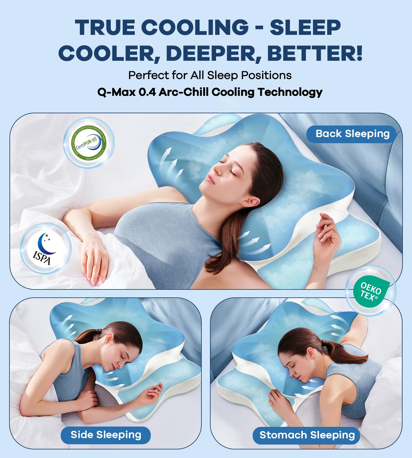 【2 HEIGHTS AND ARMREST DESIGNS】When you are still troubled about not finding the right height pillow, our cervical pillows have 2 different heights on both sides for you to choose, so you can choose the right one which is more suitable for your sleeping posture. And there are specific grooves that allows your arms to go under for comfortable sleep.This orthopedic pillow is suitable for all kinds of sleeping posture,such as stomach ,back ,side sleeping.