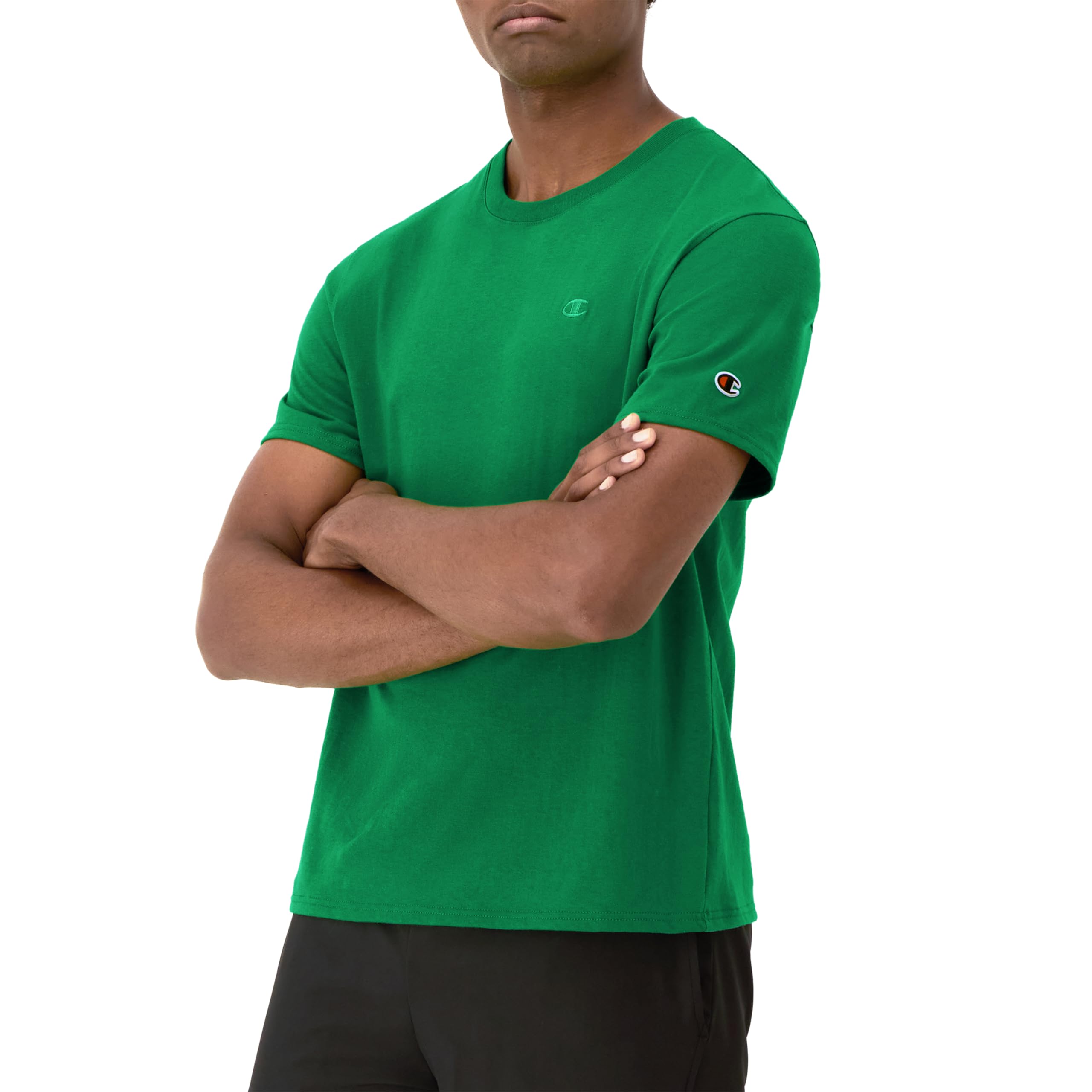 Description TIMELESS THREADS. Add lived-in comfort to your daily rotation with this T-shirt for men, expertly crafted from a soft cotton or cotton blend. Cut for a standard fit, it's detailed with a shape-holding ribbed crewneck, short sleeves, and matching back neck tape for no-irritation comfort. This classic men's T-shirt style is a must-have that pairs well with sweats and shorts for a rounded-out sporty look. Finished with the iconic C logo patch embroidered at the chest for an authentic look.