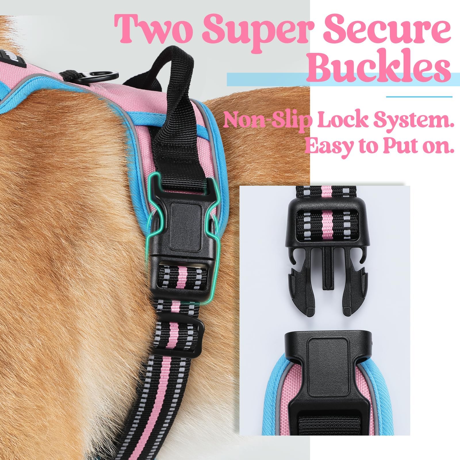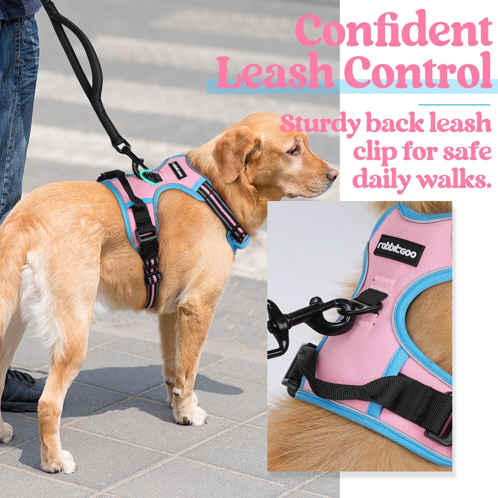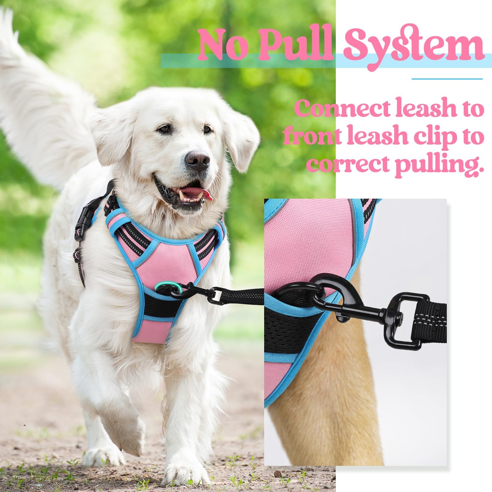 No Pull, No Choke - Our non-pulling dog harness is specially designed with 2 metal leash rings for safer dog walks. Use the chest attachment clip to stop your dog from pulling on walks, perfect for dog training or dogs who tend to pull. The back one is great for casual walks, jogging, hiking, etc