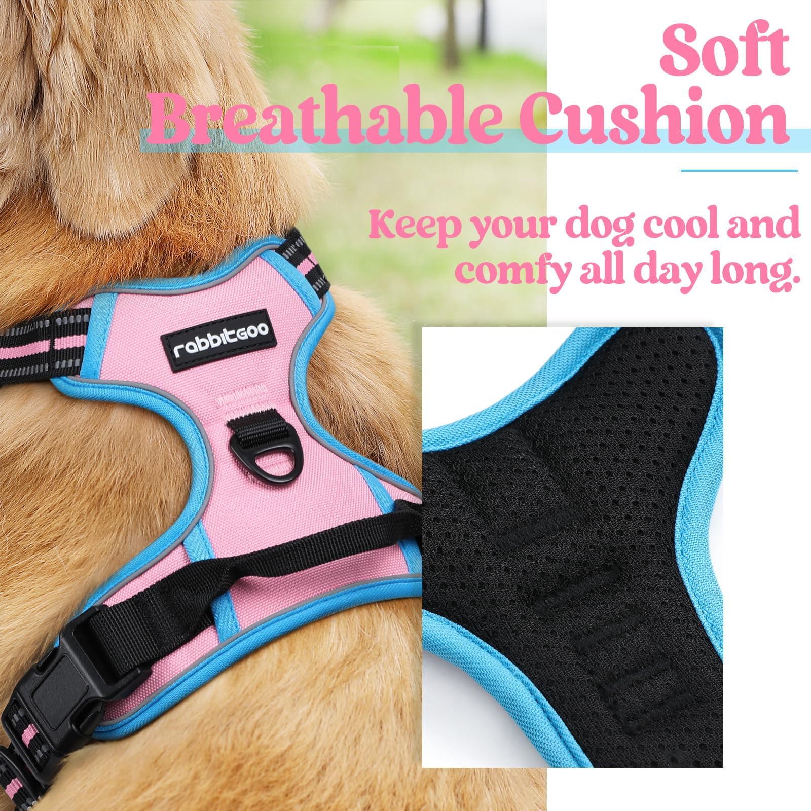 Safe and Comfortable - Your dog will enjoy the daily walk in this comfort dog harness! Made of sturdy polyester oxford and padded with soft cushion to protect your dog's skin. Breathable air mesh keeps your dog cool during outdoor activities. Super bright reflective strips ensure a safe walk both day and night